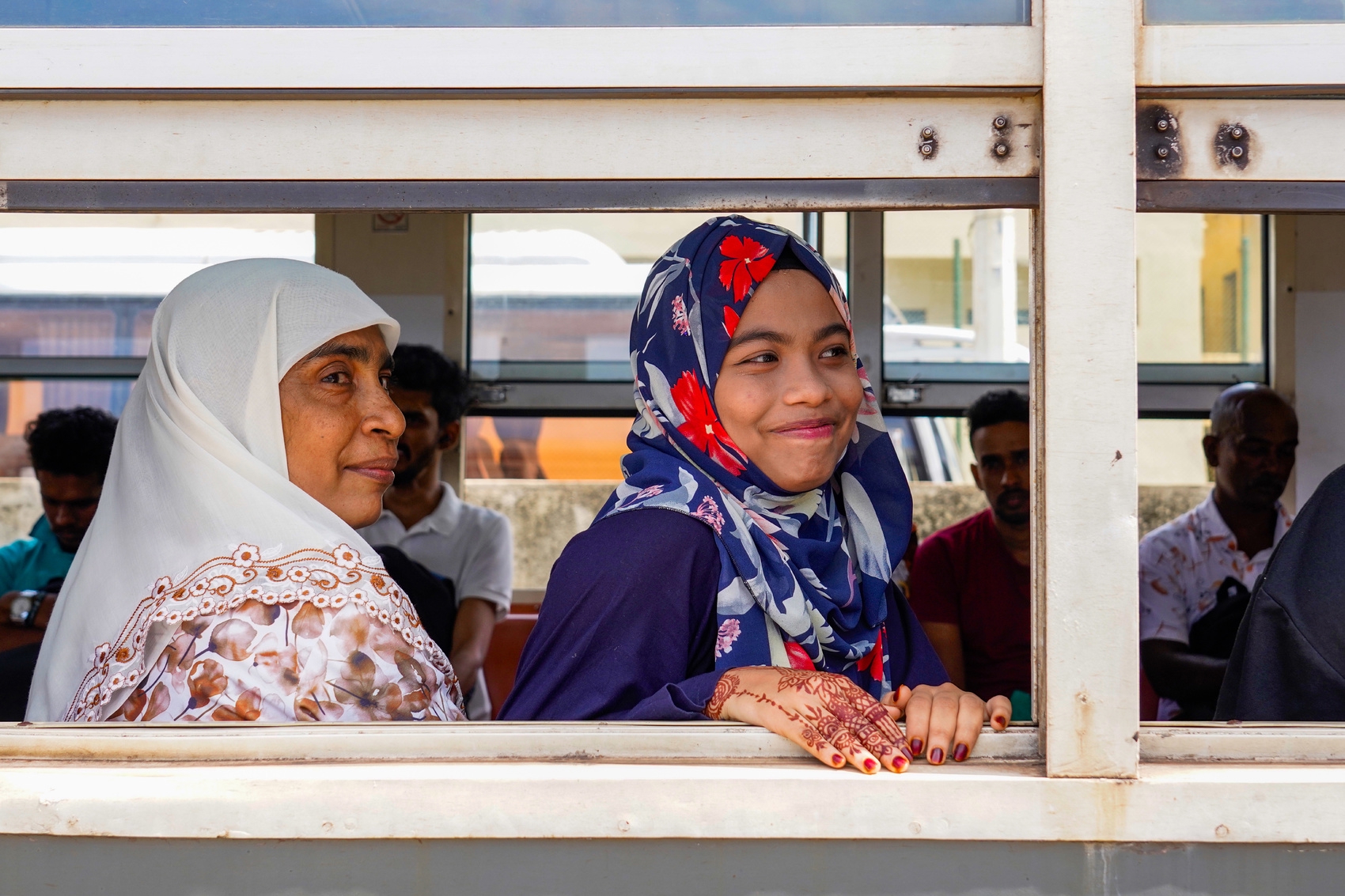 加勒到科伦坡的火车上,手上绘有海娜图案的穆斯林小女孩与母亲。