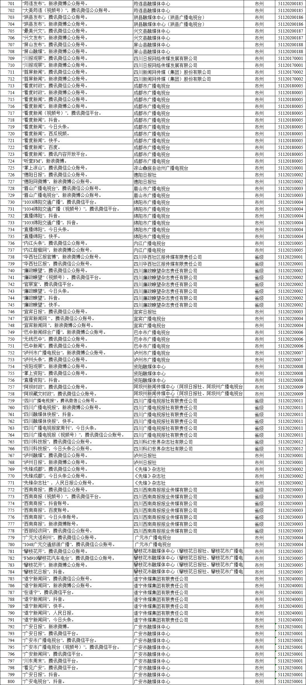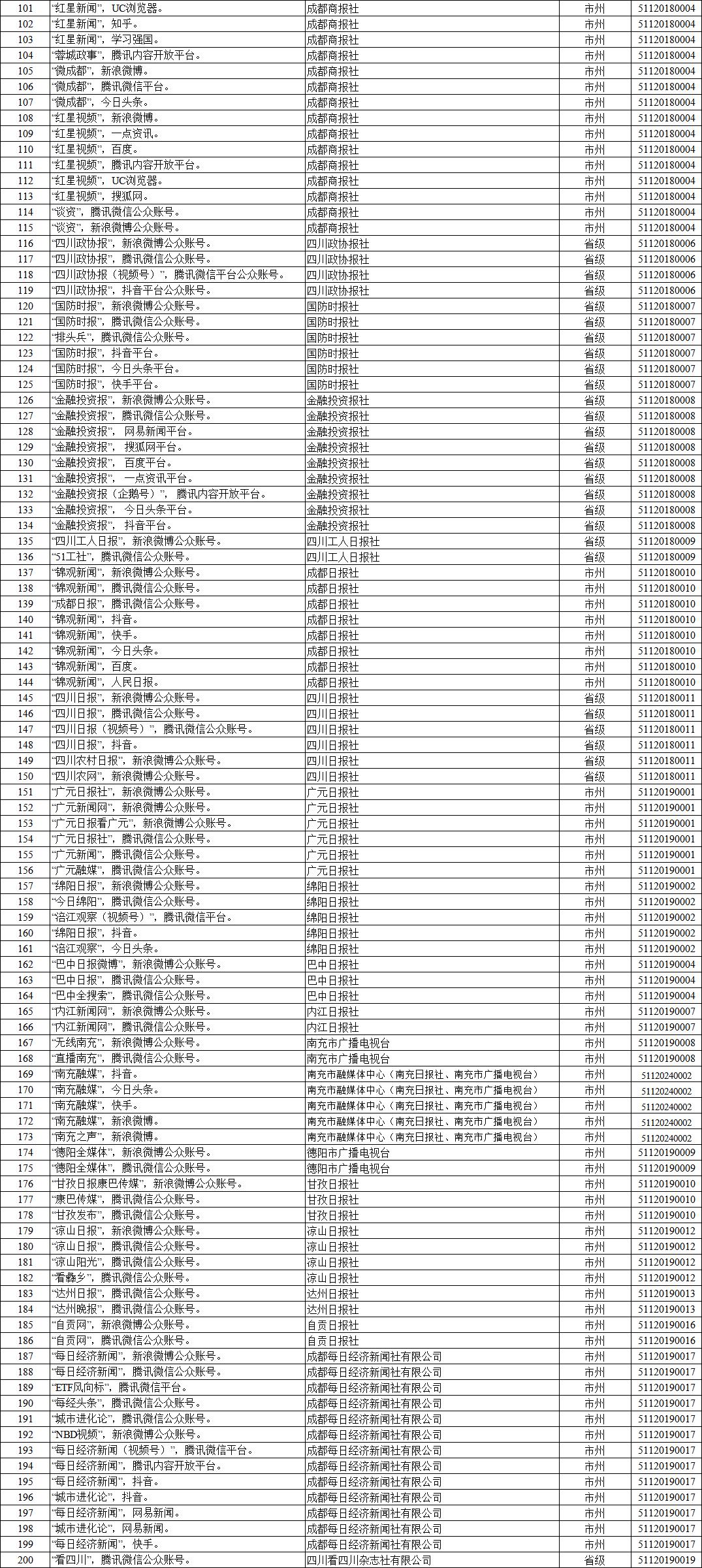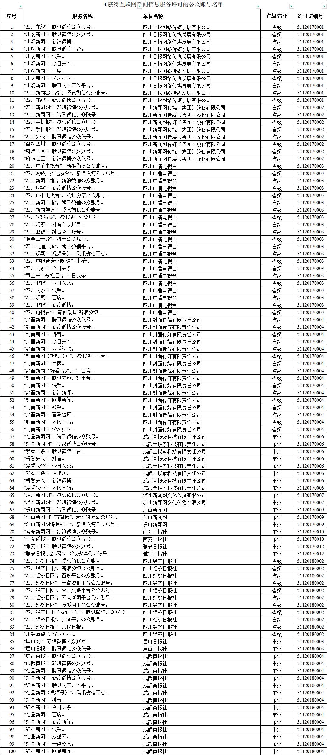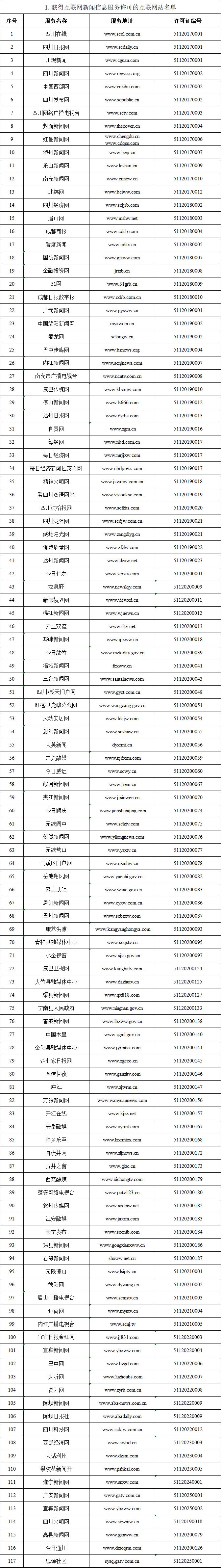 自2017年6月1日《规定》实施以来,四川省互联网信息办公室认真组织开展互联网新闻信息服务许可工作。现将四川省互联网新闻信息服务单位相关许可信息予以公开,包括:互联网站117个,应用程序219个,论坛9个,公众账号815个,小程序4个,其他2个,共计1166个服务项。