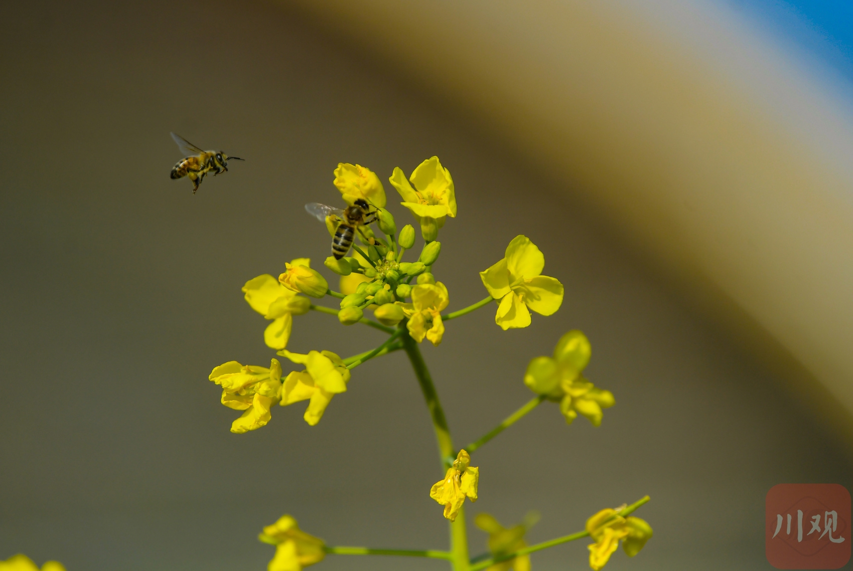 2026年1月14日,在位于成都市新津区的天府农博园内,两只蜜蜂油菜花上采蜜。