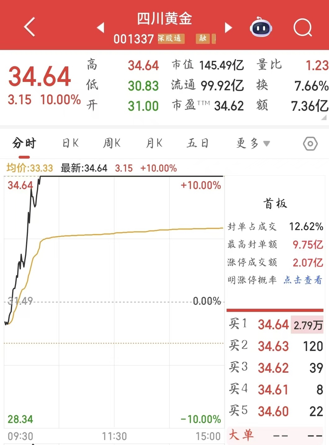 贵金属板块上涨,四川黄金涨停。
