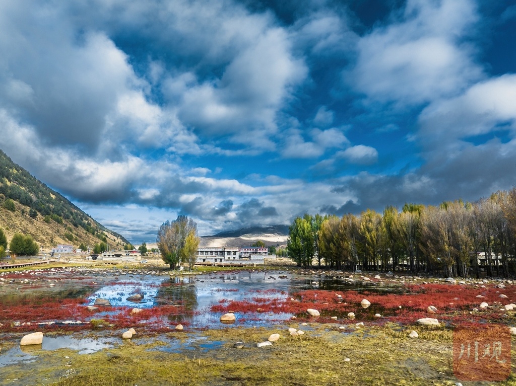秋风起,稻城红草地悄然换上 “红妆”。