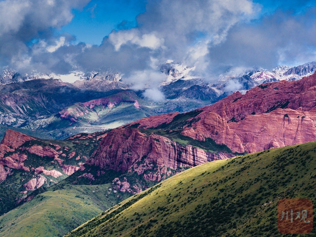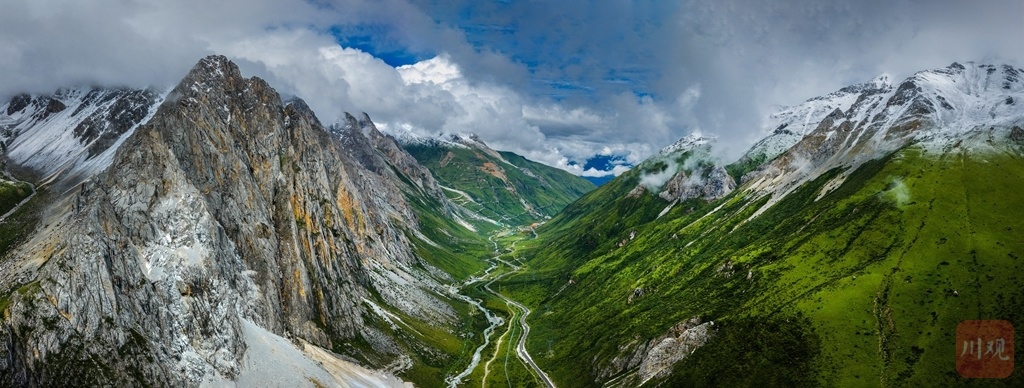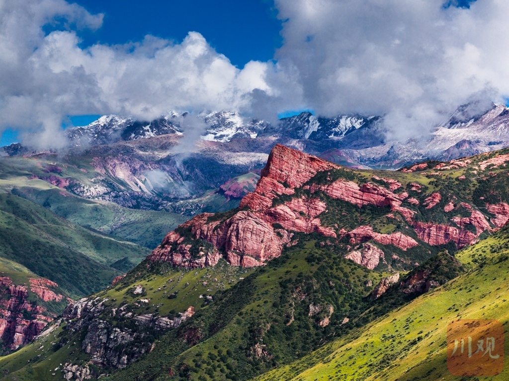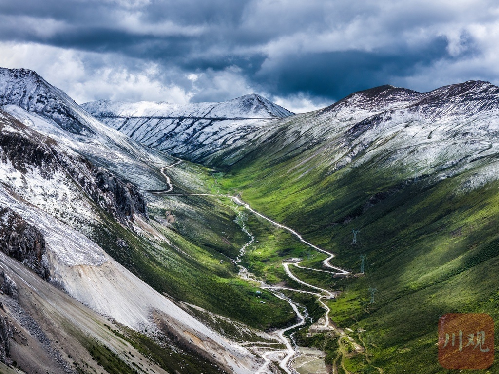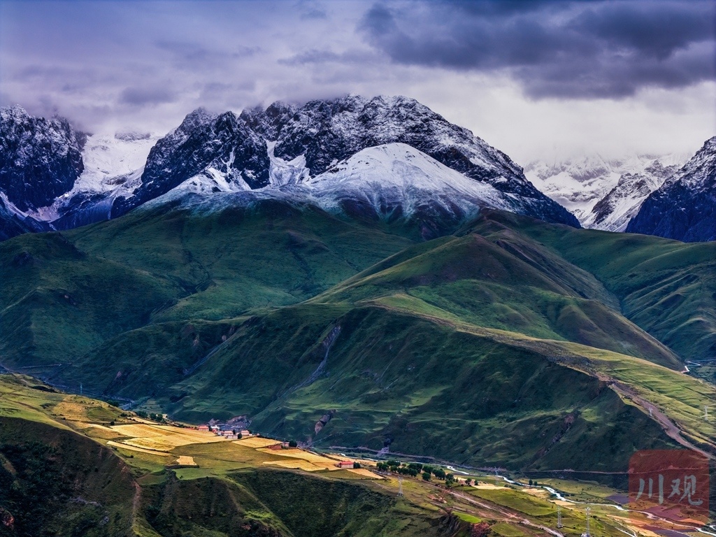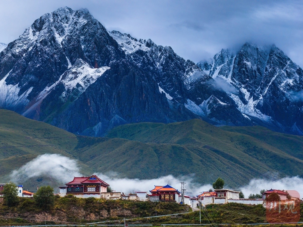 夏日的甘孜县,雪山巍峨依旧。