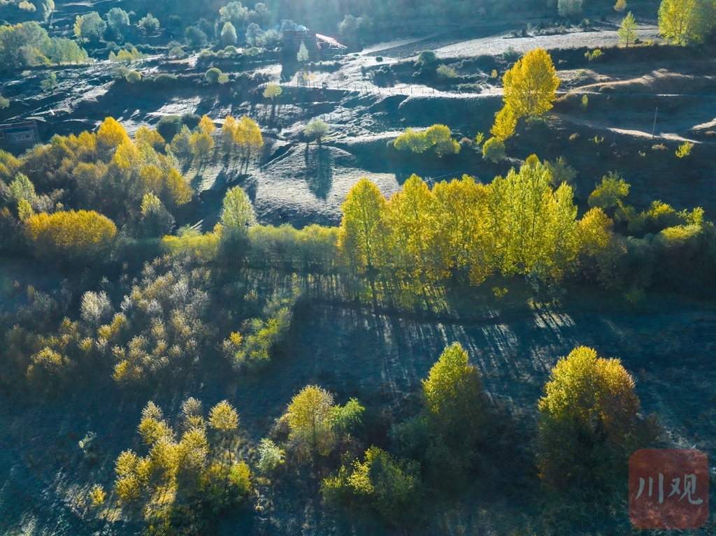 秋日的新都桥,阳光穿过杨林洒下 “碎金”,每一帧画面都尽显川西高原的独特风情。