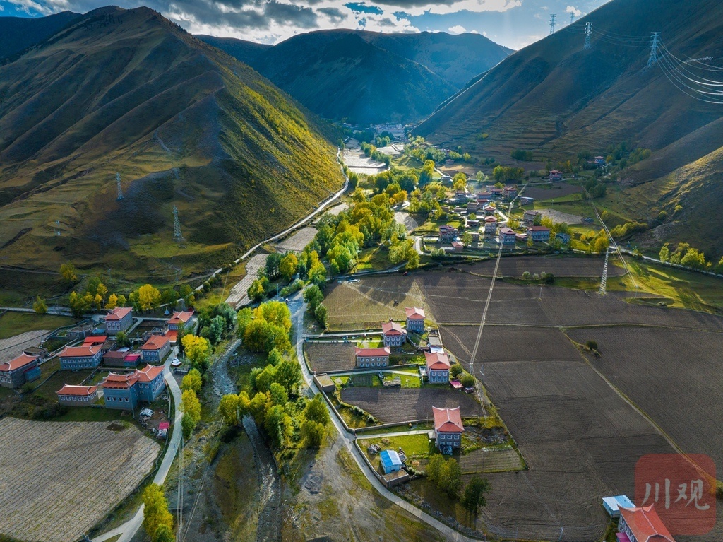 晨曦初露,万丈霞光为甘孜县的乡村大地披上 “金衣”。