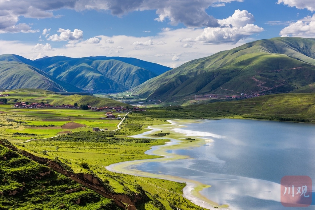 卡萨湖静卧在炉霍县境内,云影倒映,水鸟翩跹。