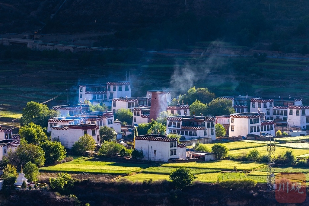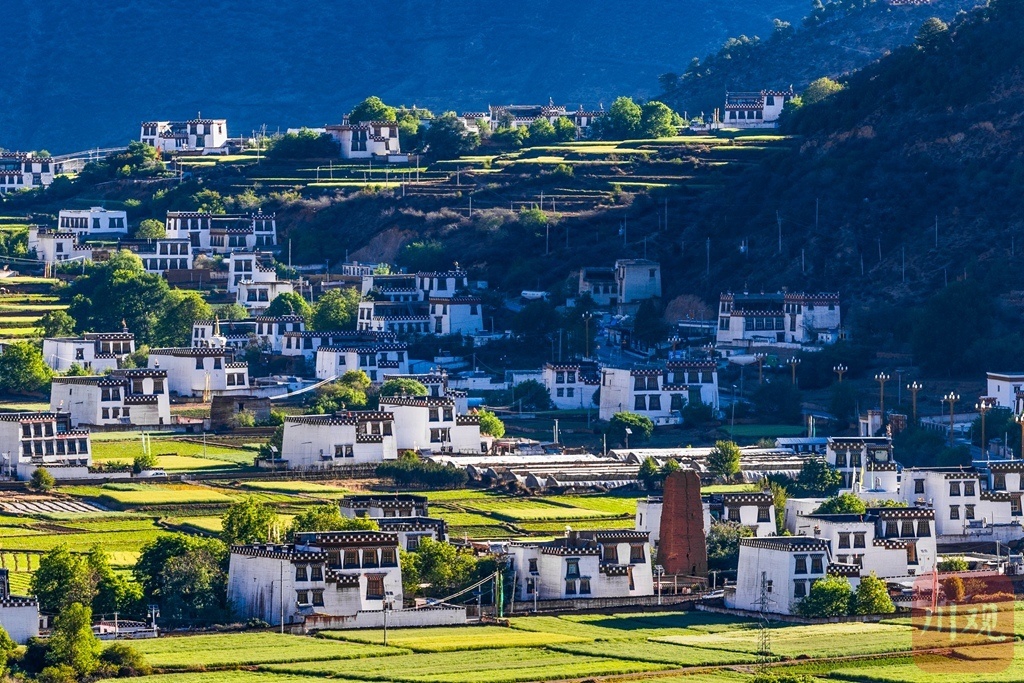 乡城白藏房散落在乡野间,尽显川西雅致。