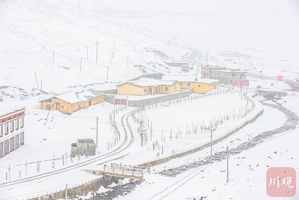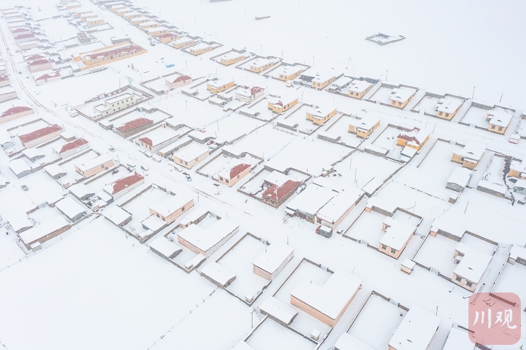 雅江县红龙镇,春日罕见大雪过后,村舍银装素裹。