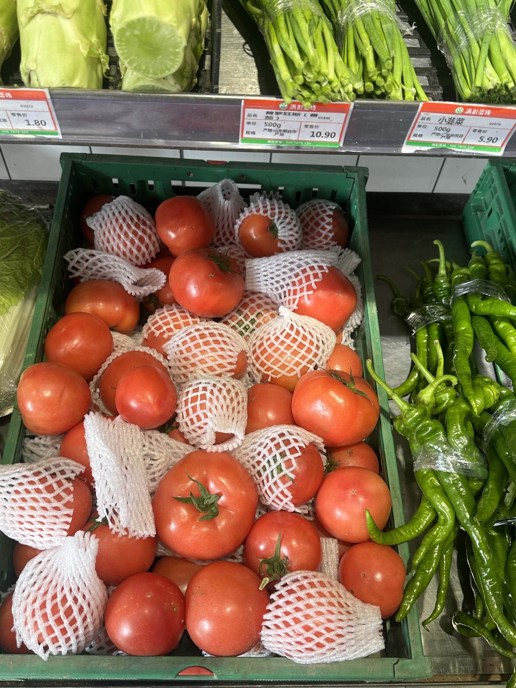 满彭菜场内,产自山东烟台的普罗旺斯西红柿卖到了10.9元/斤。