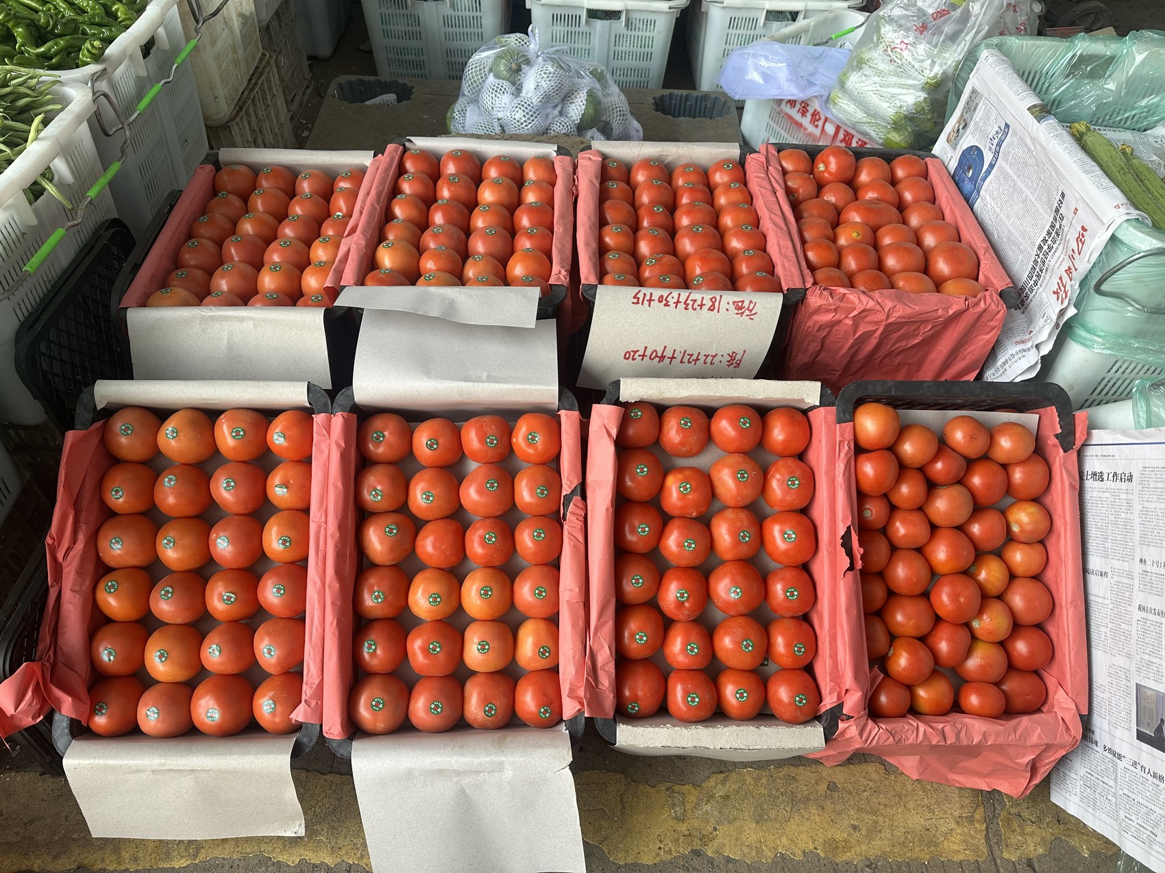 海吉星・成都市场,西红柿出货价格为每斤3元—4元。