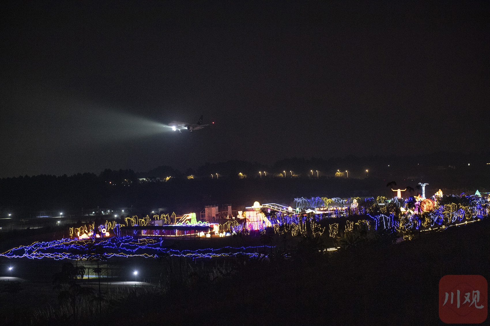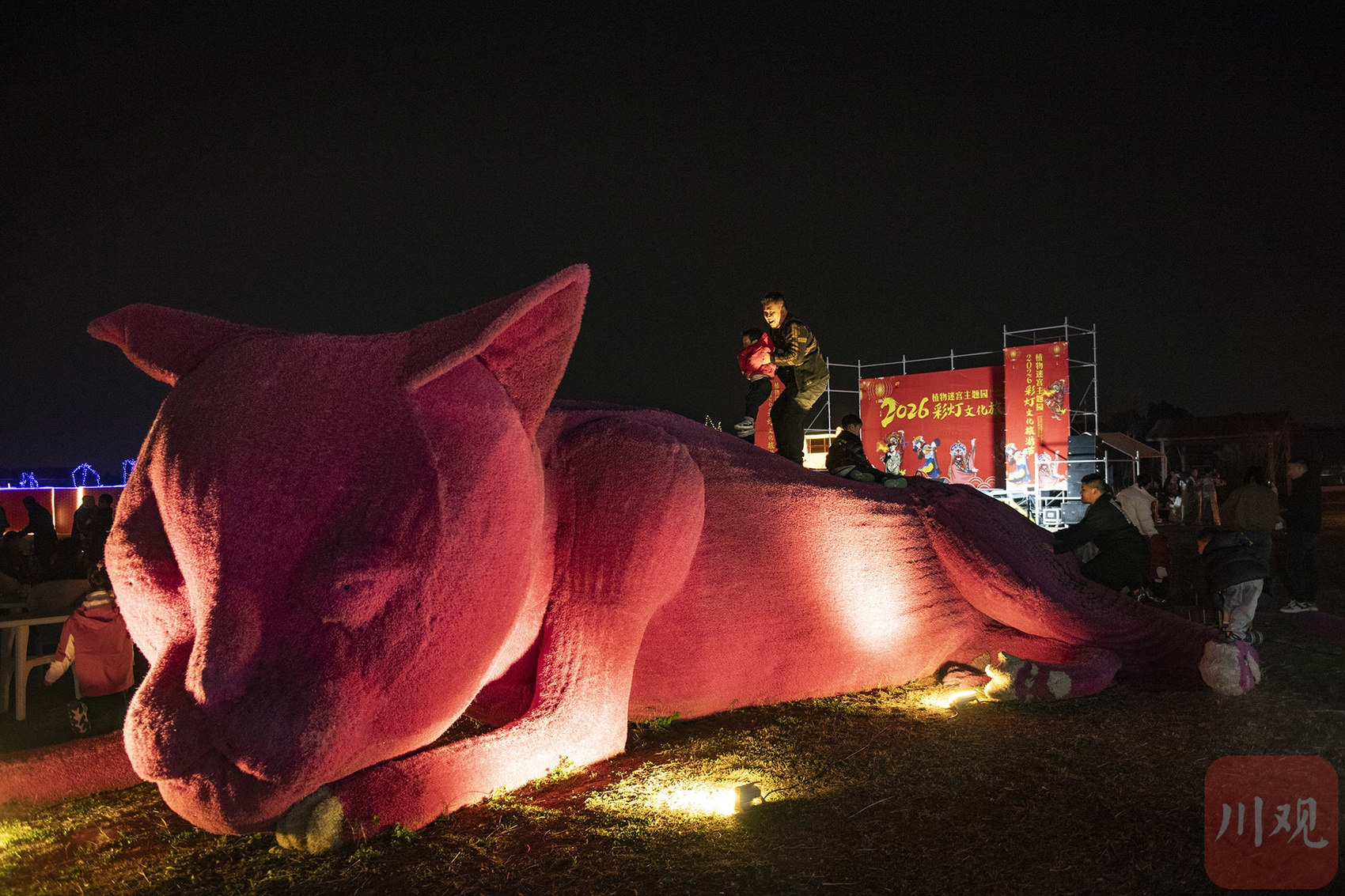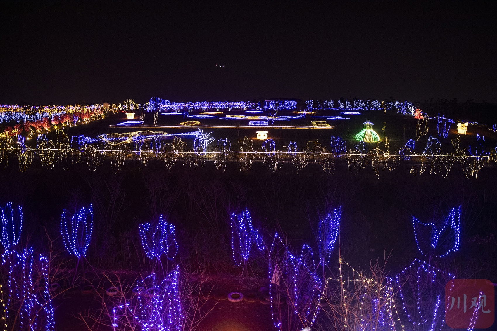 2026年1月16日晚,成都市双流区梦幻植物迷宫彩灯节正式亮灯,吸引游客前来观赏。