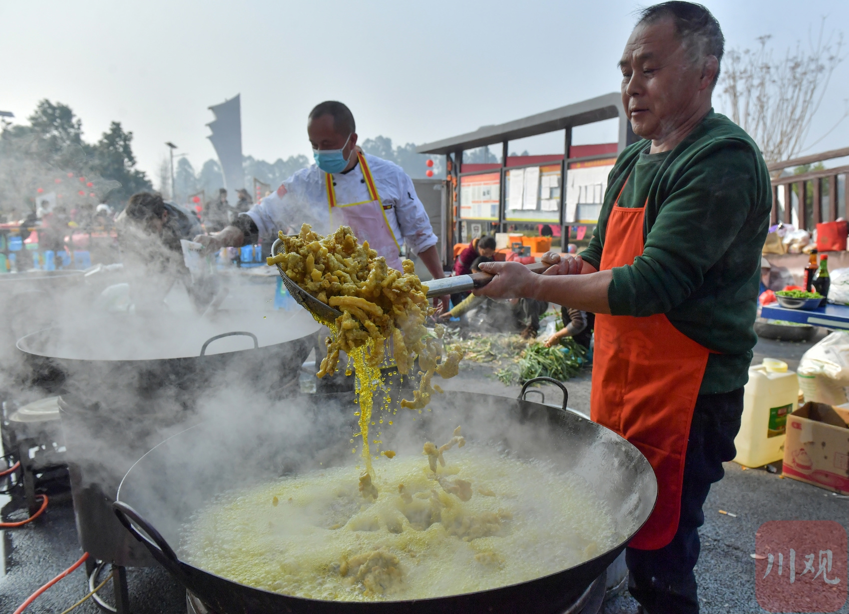 2026年1月17日,在四川省成都市双流区黄龙溪镇川江村,厨师配制菜品准备坝坝宴。