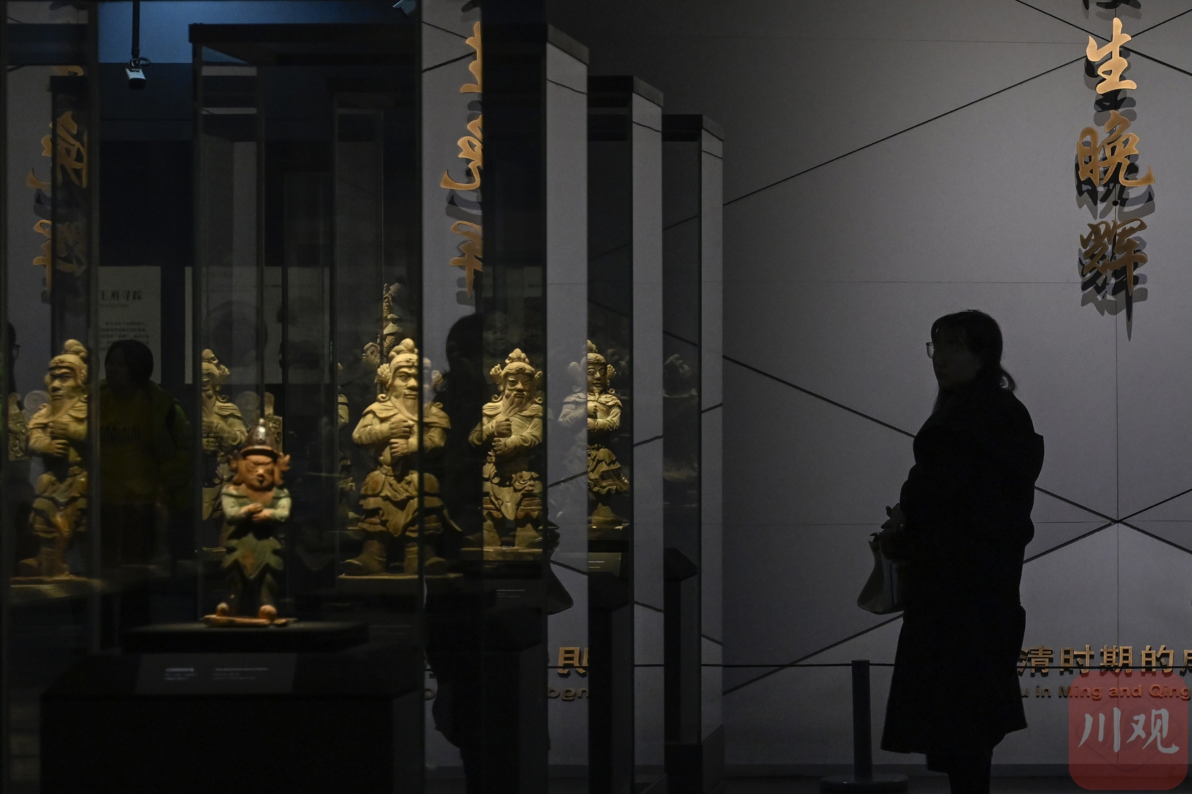 1月11日,成都博物馆内,年轻人正在参观《花重锦官城:成都历史文化陈列(古代篇)》展览。