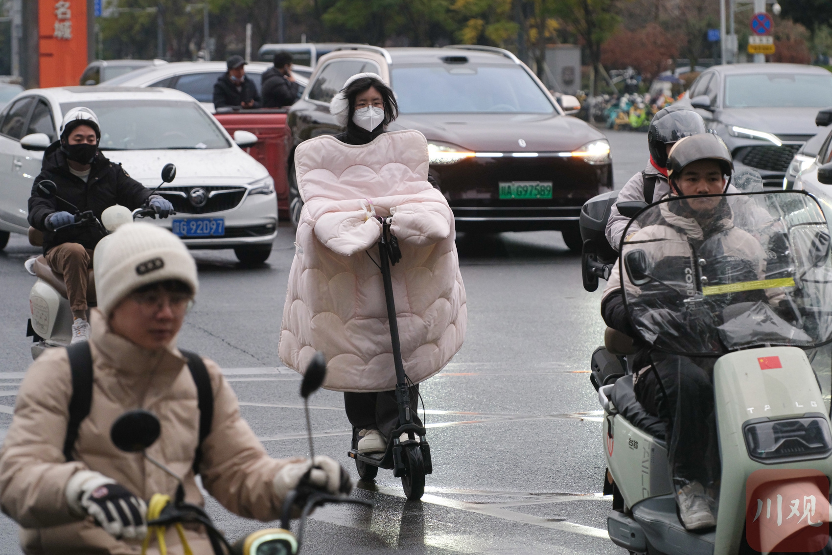 1月19日早高峰,成都天府三街的街头被厚重的冬衣填满。有人戴上了帽子,有人双手插进口袋,步履匆匆穿过人行道和斑马线。寒风从街角吹来,街道上充斥着匆忙与寒意。