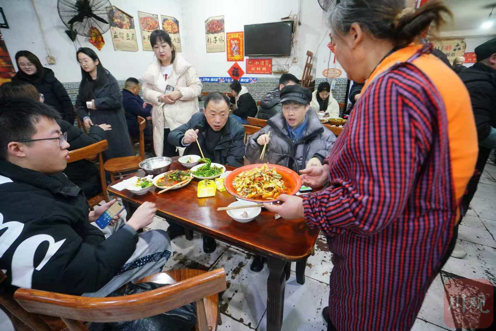 从红星路赶来的蒋先生和朋友12点就开始排队,等了一个小时才吃上。他说道:“最早是在网上刷到老成都口音的段子来的,排了队还是值得,味道确实巴适!”正是这波网络热度,让这家藏在街巷里的老饭店成了打卡热门。