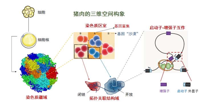 1月19日,记者从四川农业大学李明洲团队获悉,该团队运用前沿育种技术,成功绘制了四川黑猪基因“三维动态图谱”,从而可定位调控肥瘦肉比例、生长速度等性状的关键基因“开关”,初步揭示了相关基因运行机制。“在保证与省内黑猪品种肌内脂肪含量相当基础上,新黑猪品种生长周期缩短了3个月。”李明洲介绍。