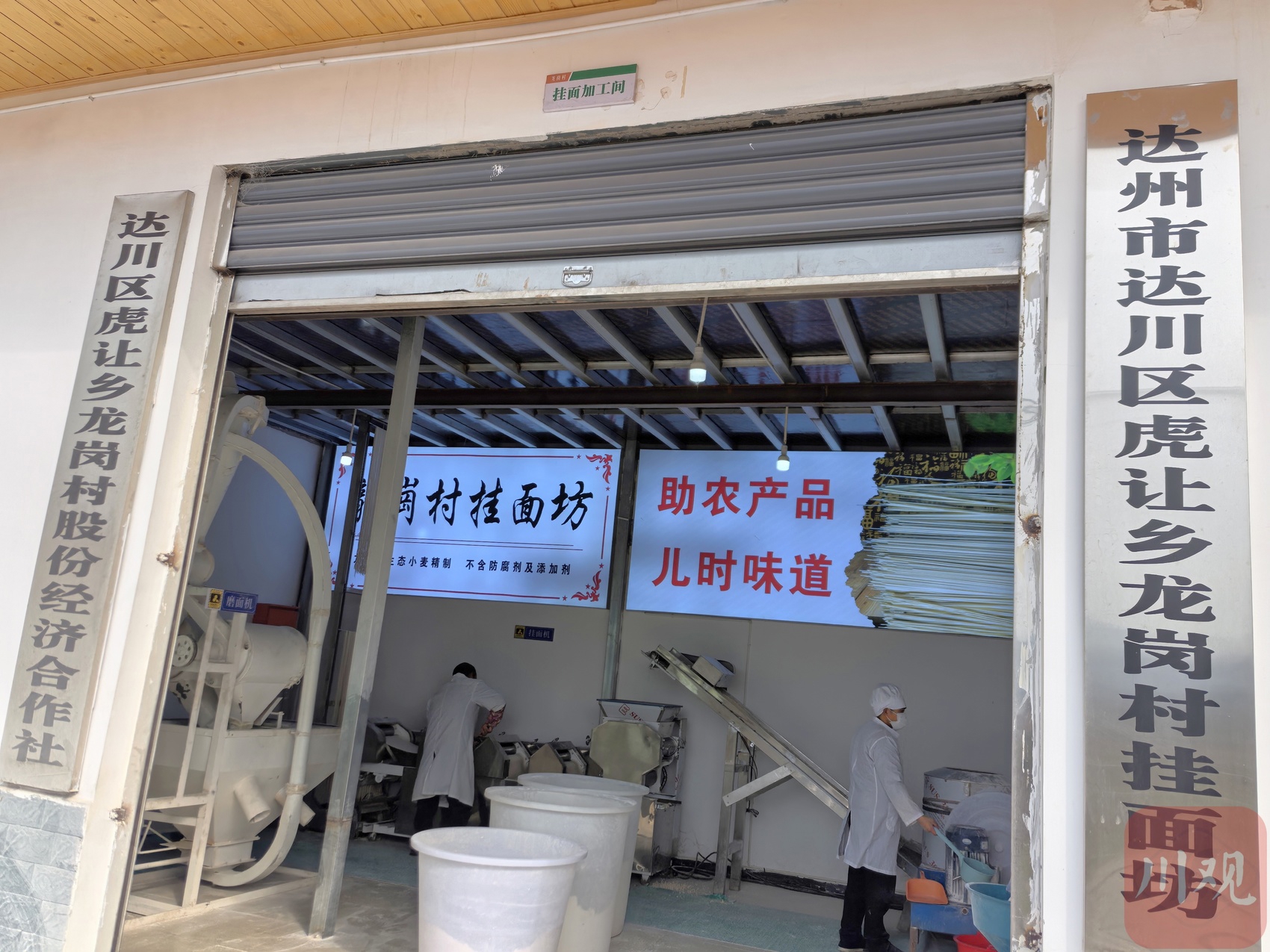 2024年,龙岗村经过市场调研,利用闲置村办公室建起挂面坊。赵李认识到,“社会上缺失的,或许就是市场空间。”他记得小时候村里有好几家挂面坊,虽然后来全部关闭,但人们对挂面的需求始终存在。同年7月,挂面坊投产,凭借“纯麦挂面,无添加”的特色,通过口碑传播和直播带货迅速打开销路,甚至出现卖断货现象。2025年,挂面坊加工小麦6万斤,产品通过“虎让味道”网店走出四川。