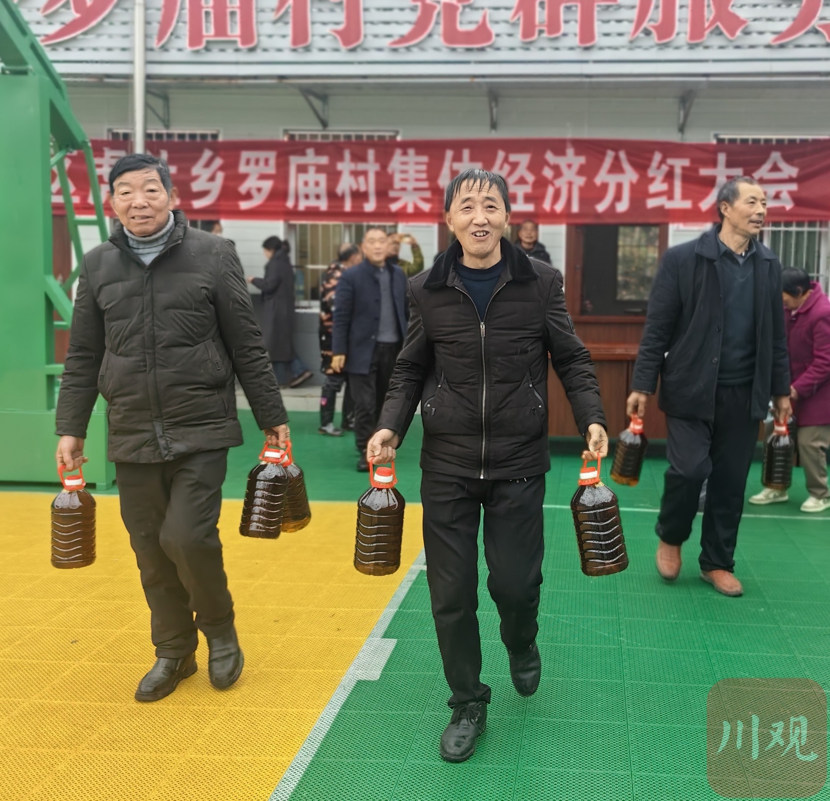 2025年春节前夕,罗庙村举行首次村集体经济分红大会,从2万元利润中拿出1万元为村民发放自榨菜油,并将部分利润投入村民入户自来水管道安装。