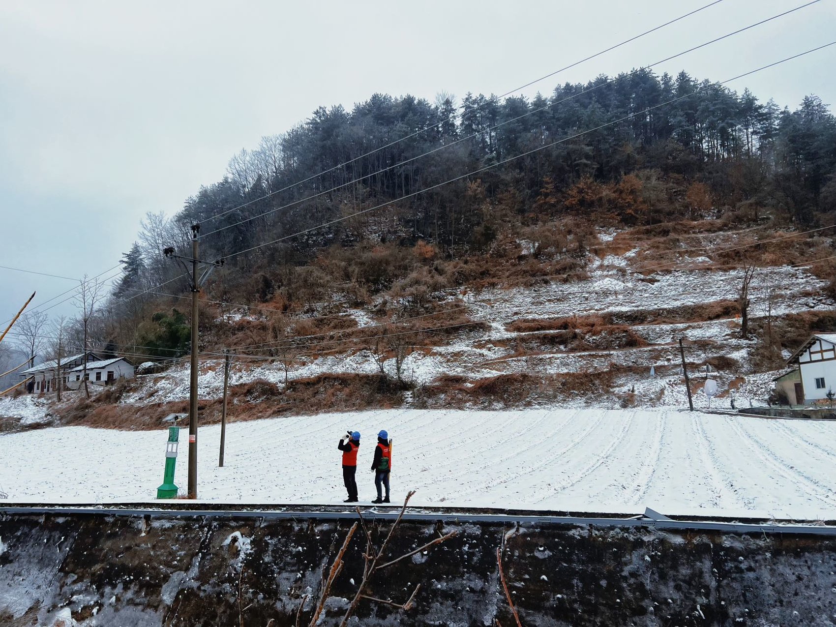 在广元,受严寒冰冻天气影响,曾家山海拔1400米以上区域线路挂满冰柱,部分路段因冻雨结冰导致车辆无法通行。当地供电所人员分成5组,徒步跋涉结冰山路开展特巡。3名运维人员手脚并用,徒步近2公里、历时一个半小时抵达观测点,借助测风仪、无人机、望远镜等设备,完成辖区5条10千伏线路特巡。