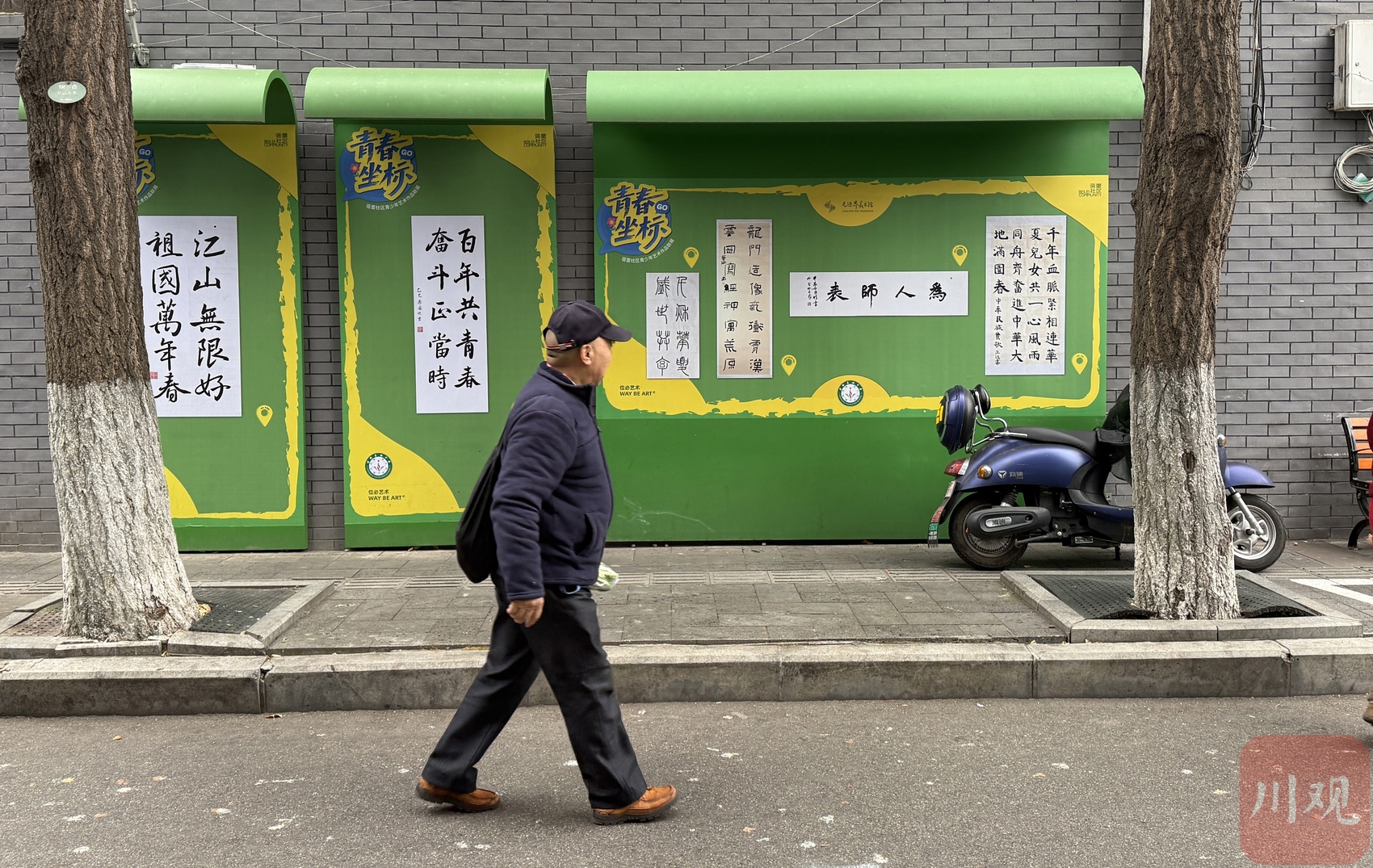 事实上,在蓓蕾社区的许多街道和公共区域,遍布着许多展览场所——既有艺术家的作品,也有社区居民和玉林中学学生们的书法和绘画作品。这些作品常常在墙面或街角不经意间出现,居民在日常生活中就能感受文化氛围,街巷、绿地与社区居民共同构成了一幅日常生活中的文化景观,让美学自然融入生活。策展团队将这种方式称为“无边界美术馆”。