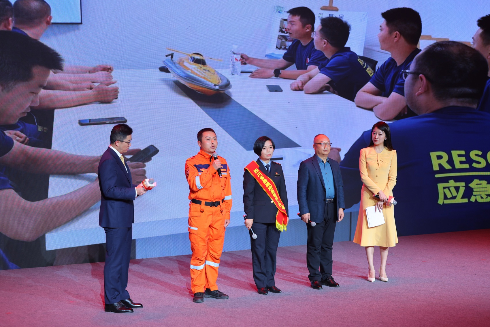 活动中,消防员和应急工作人员合唱歌曲。