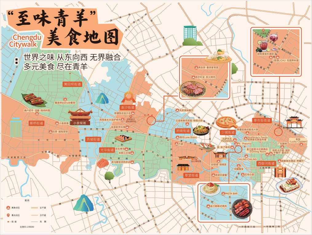 编写组从与人们生活联系最紧密的领域入手,以手工技艺、食馔味道、老建筑、街巷等为主题,以赋书写街区、集萃楹联碑刻等具有代表性的文化载体,编撰七本分册。其中,《遇·青羊 手作》收录61个青羊非遗代表性项目,涵盖从古老技艺到传统民俗等领域。《遇·青羊 至味》从文化视角呈现青羊美食,使珍馐佳肴成为可触摸、可品读的城市记忆。《遇·青羊 筑迹》介绍了青羊三十多处文物建筑和历史建筑的相关人文历史,概述其历史沿革、形制特征、平面格局与建筑风格,并收录珍贵的历史图像、精美的现状照片和颇具艺术感染力的建筑手绘图。《遇·青羊 行走》选取最具青羊特色的60余条街巷,以走街串巷的方式溯源历史,设计推出3条精品游玩线路。