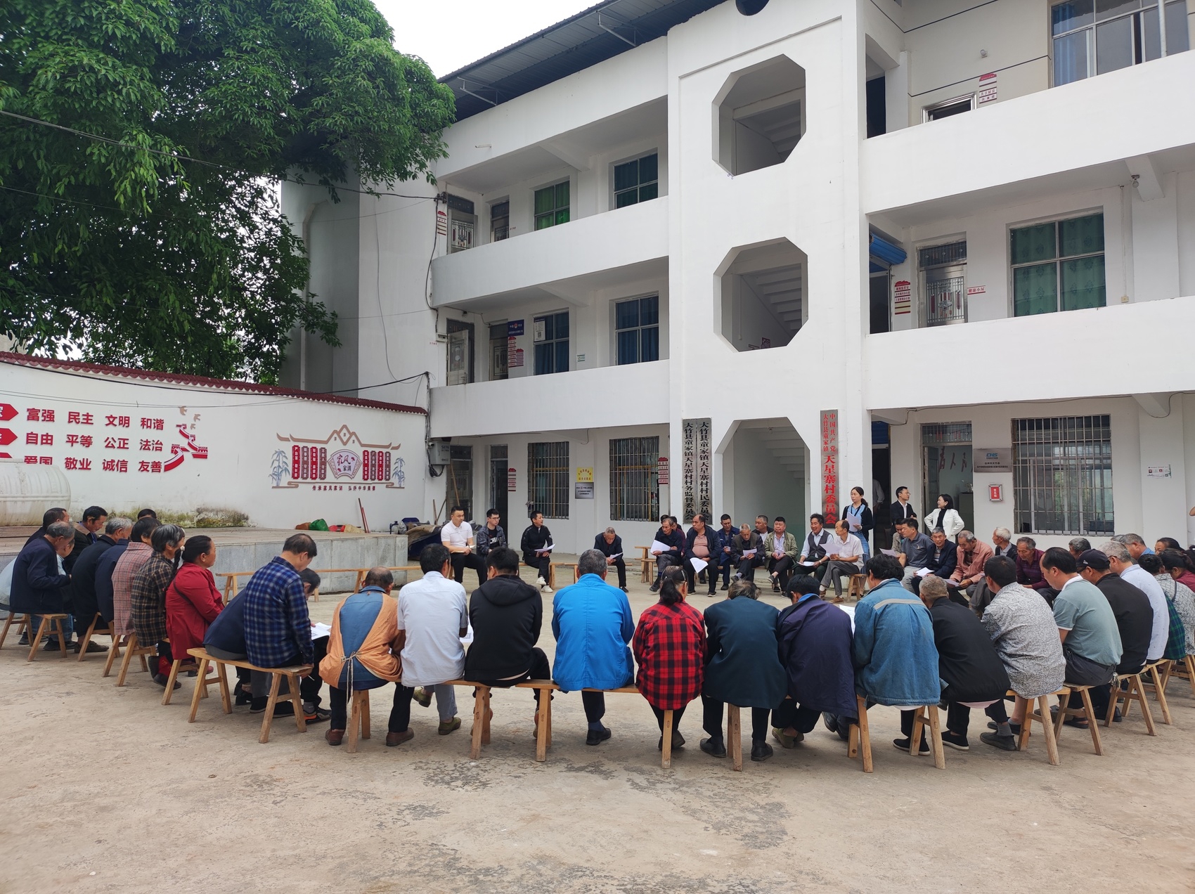 达州市大竹县委第一巡察组在童家镇天星寨村召开院坝会,宣传讲解巡察内容。(资料图片 张汉芝 摄)