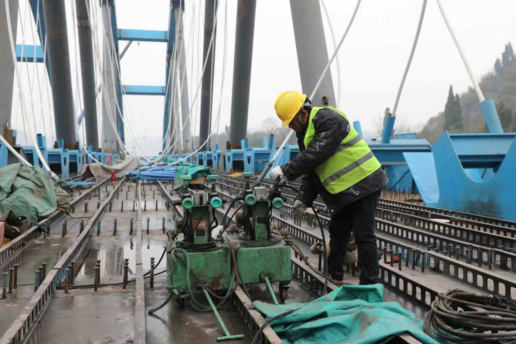工人在桥面施工