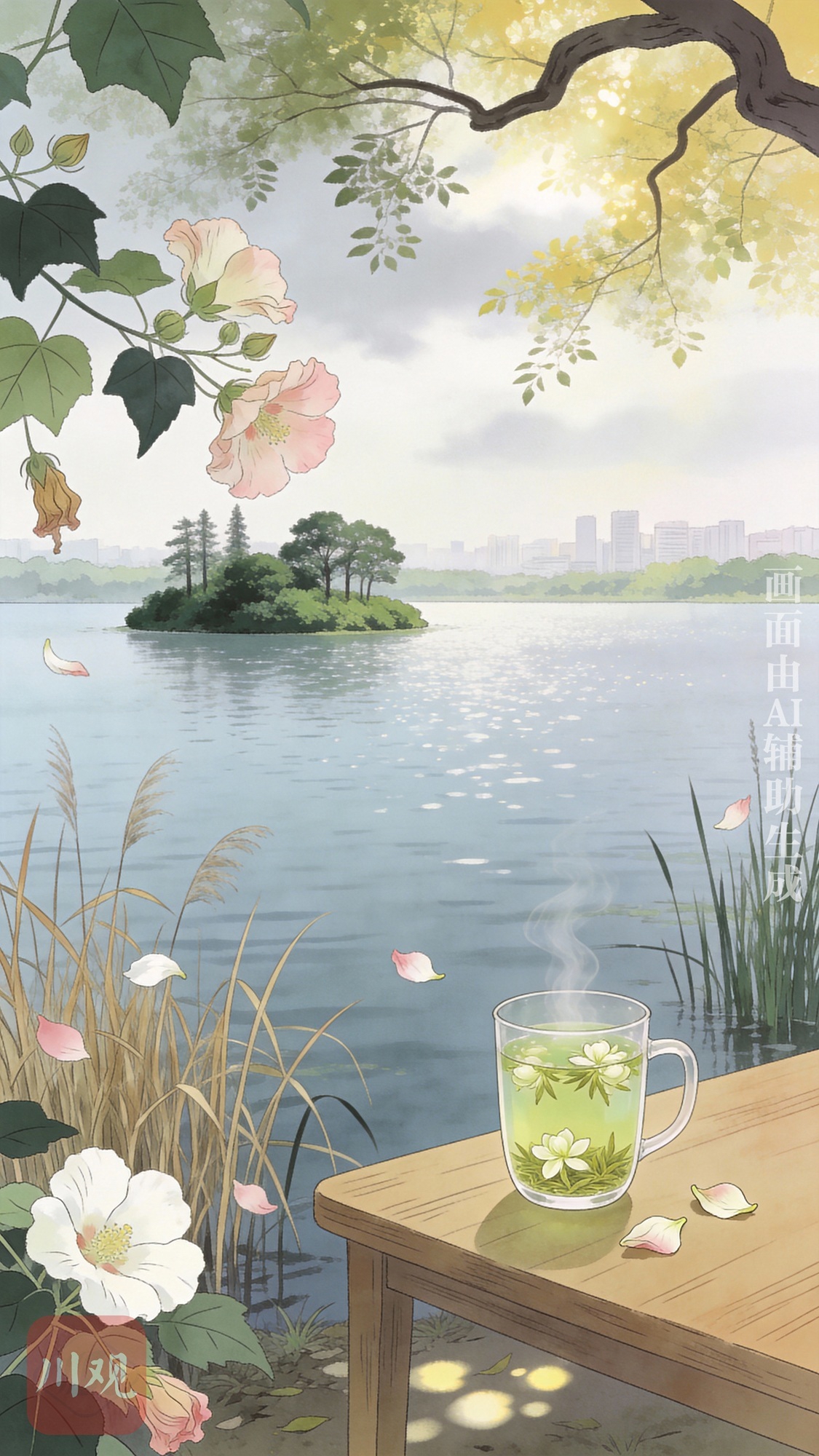 于我而言,这种说不清楚的魂牵梦萦,似有一汪最妥帖的归宿——是落定在湖畔的,一盏清茶的时光里。最终,说具体些,就是与北湖那一汪浩渺的碧波邂逅。