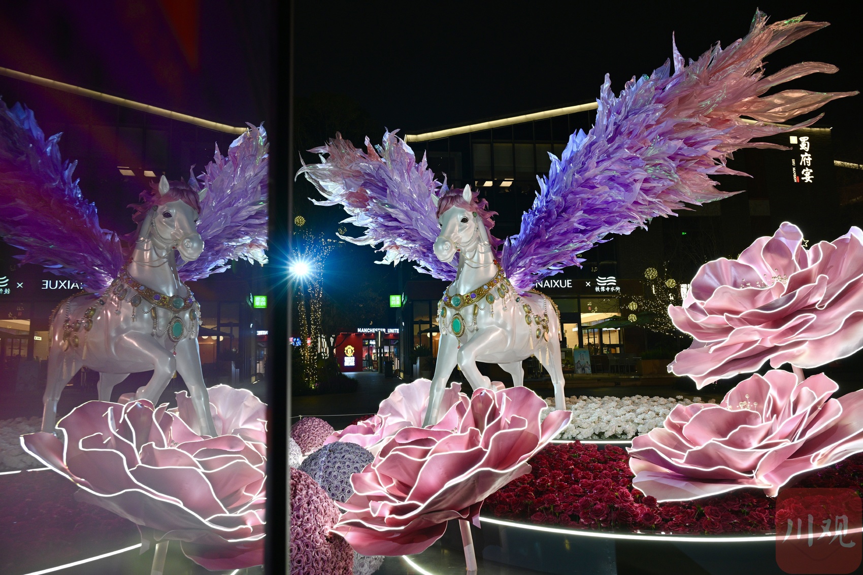 大型飞马艺术装置造型惊艳,流光溢彩。