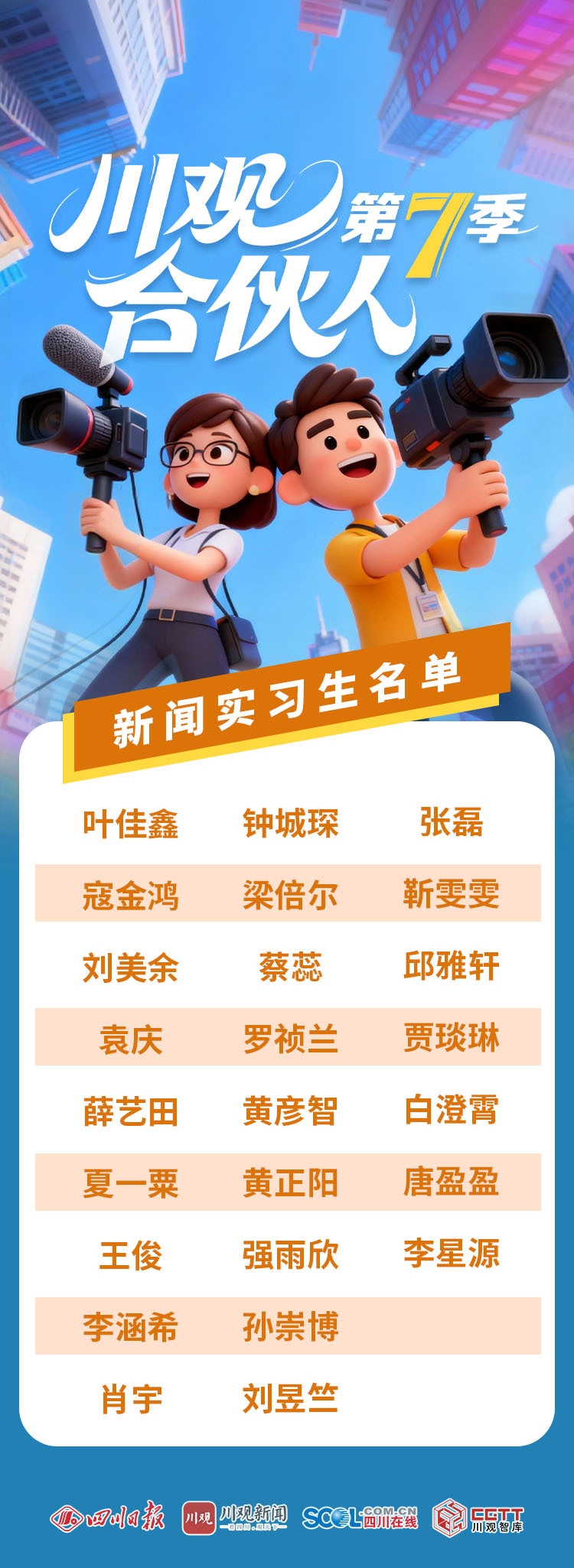 “川观合伙人”第七季新闻实习生最终名单: