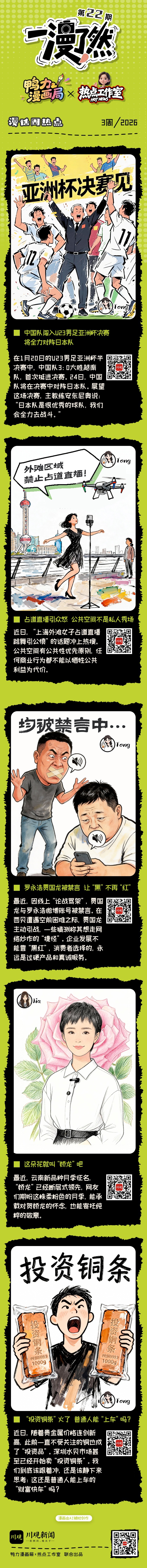 “U23国足将决战日本队”“投资铜条 普通人能‘上车’吗”……一“漫”看懂本周热点新闻丨一漫了然