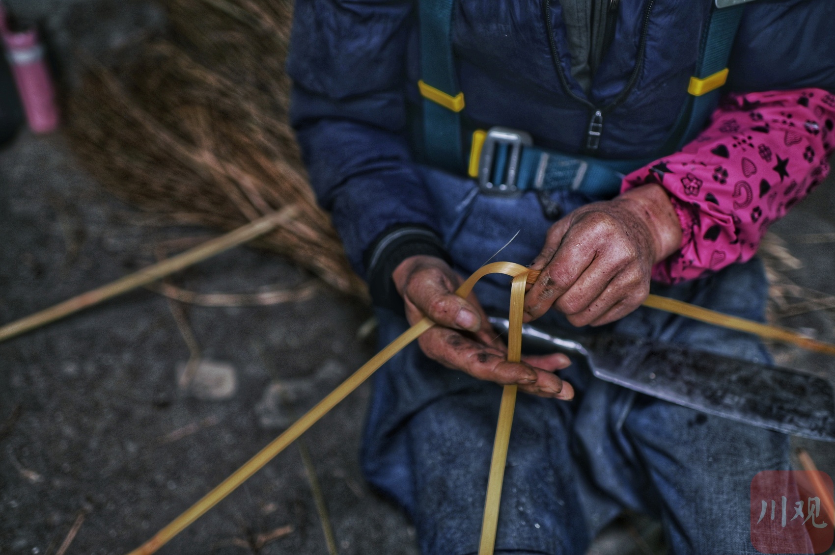 工人师傅正在制作篾条。