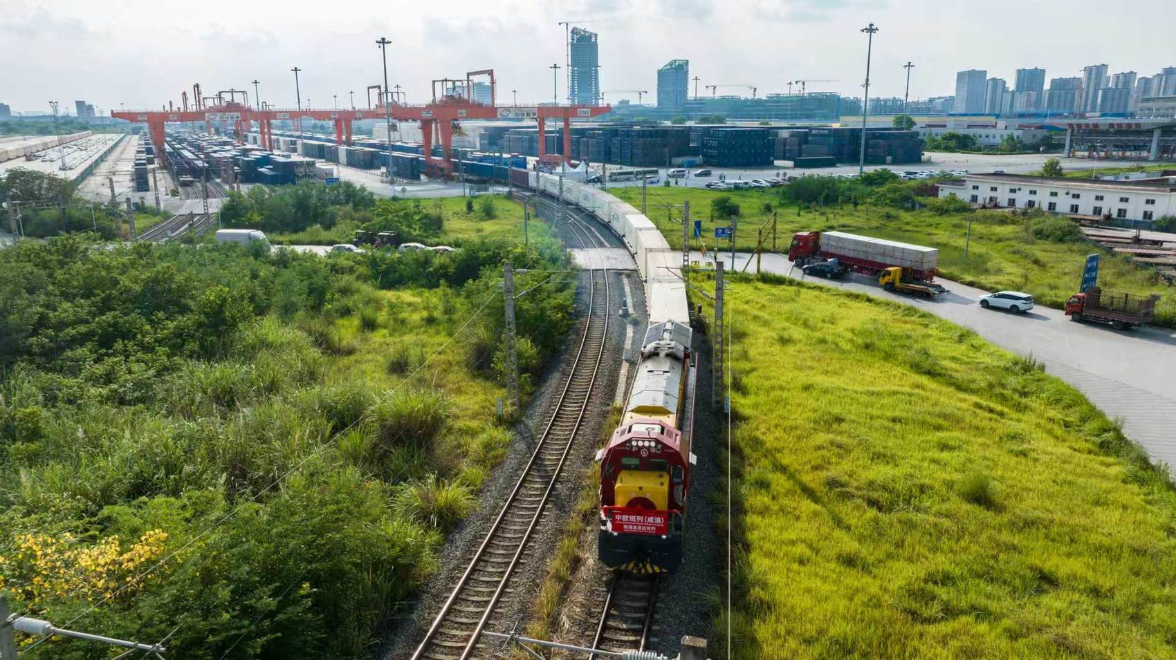 2025年7月9日,成渝两地同步发运南通道速达班列。