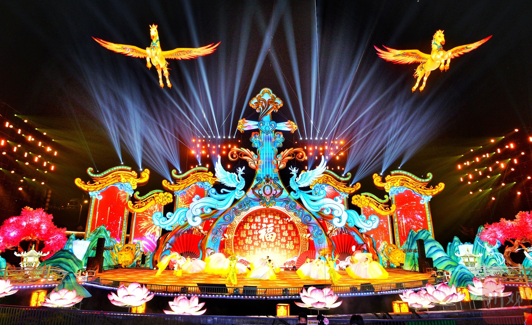 远观气势如虹的“华夏鲲鹏”灯组。