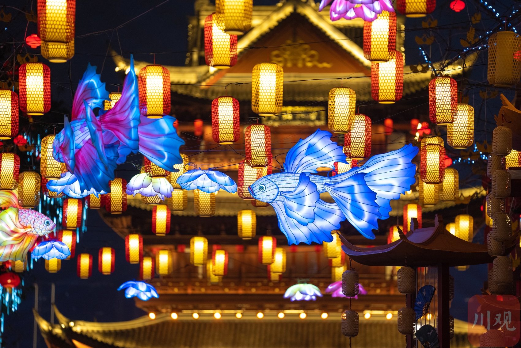 挂在空中的金鱼灯栩栩如生。