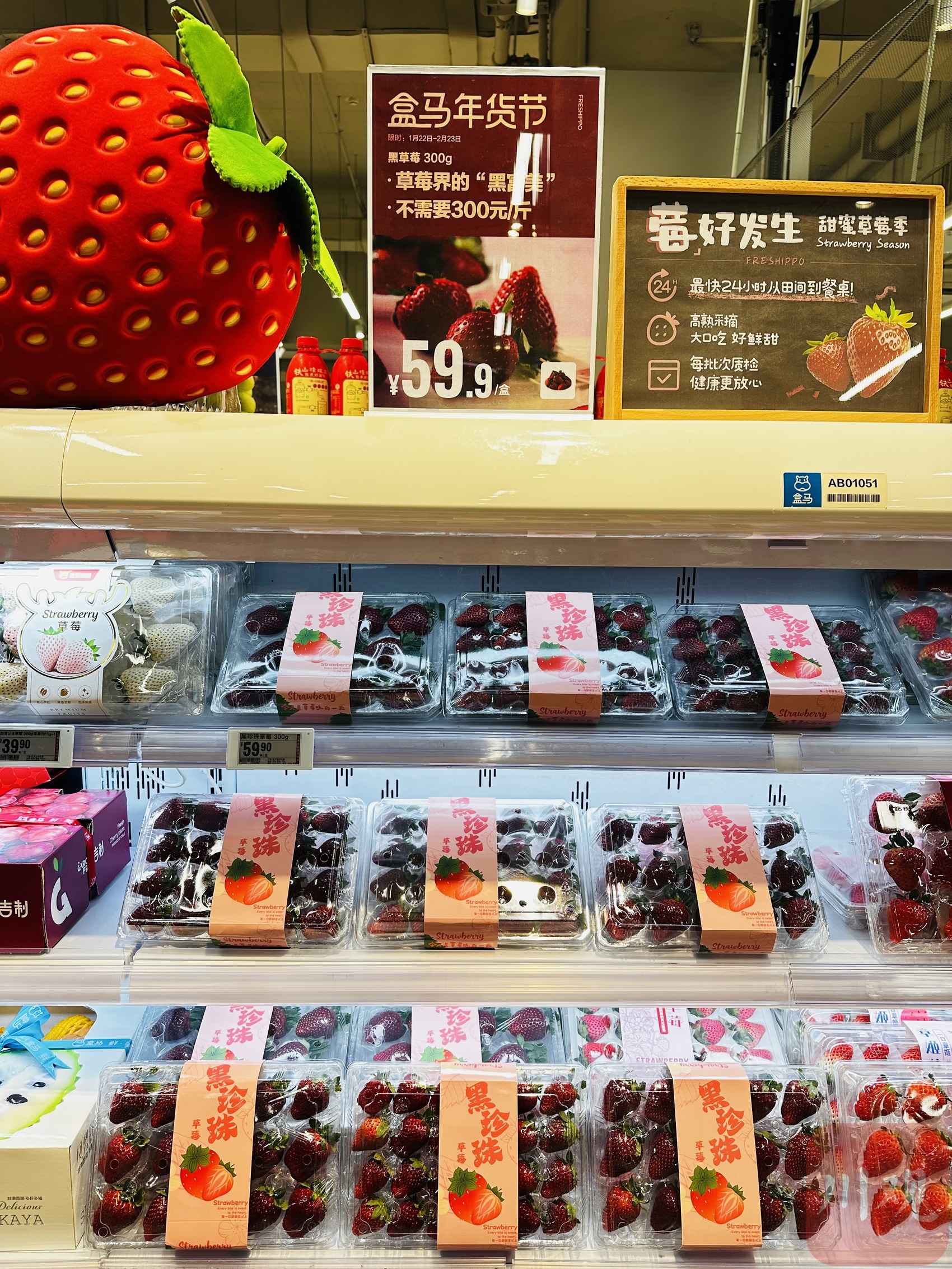 成都盒马鲜生(光环店)内的黑草莓。