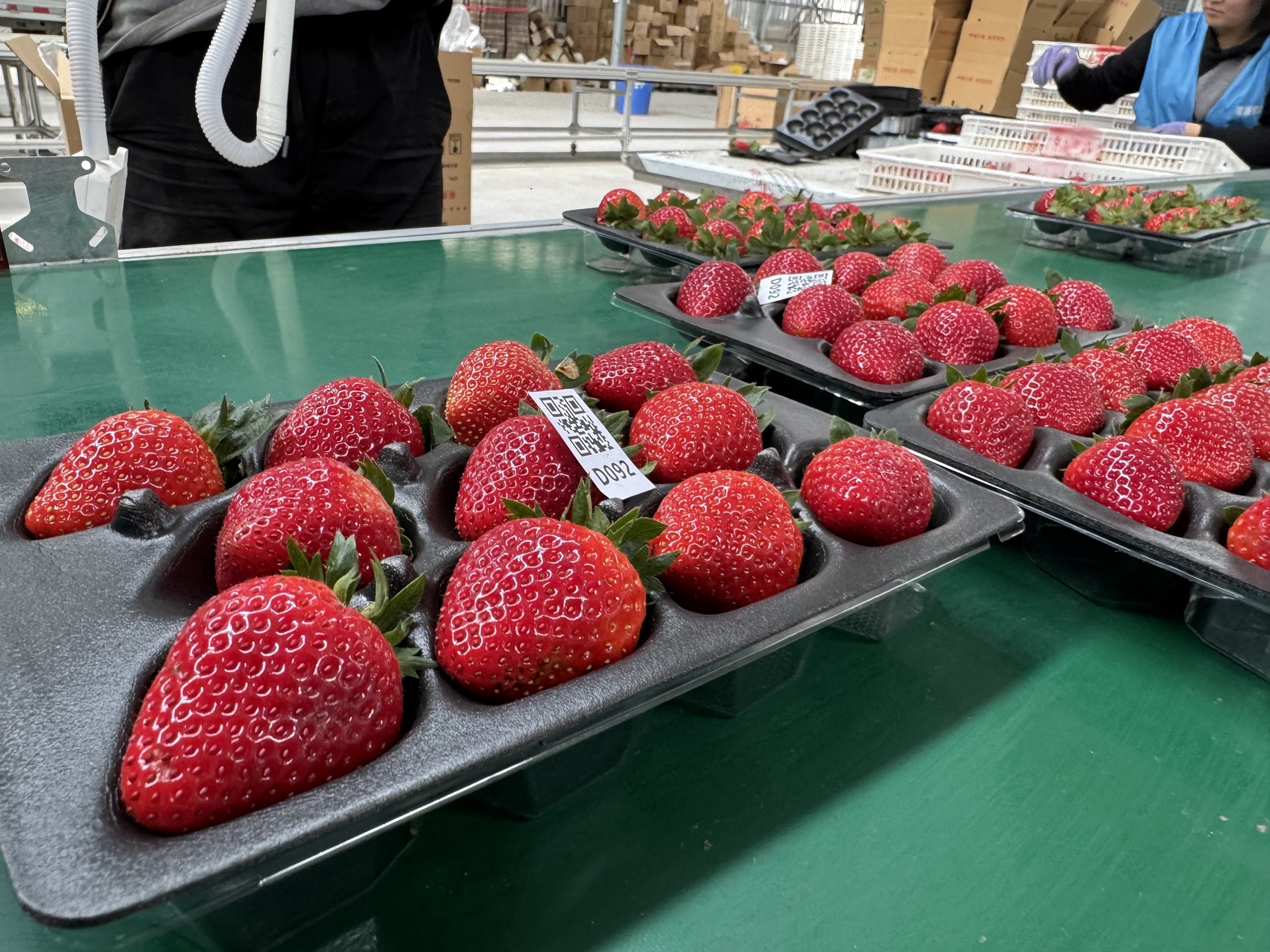 叶镇晖草莓基地内,黑草莓与白草莓搭配售卖。
