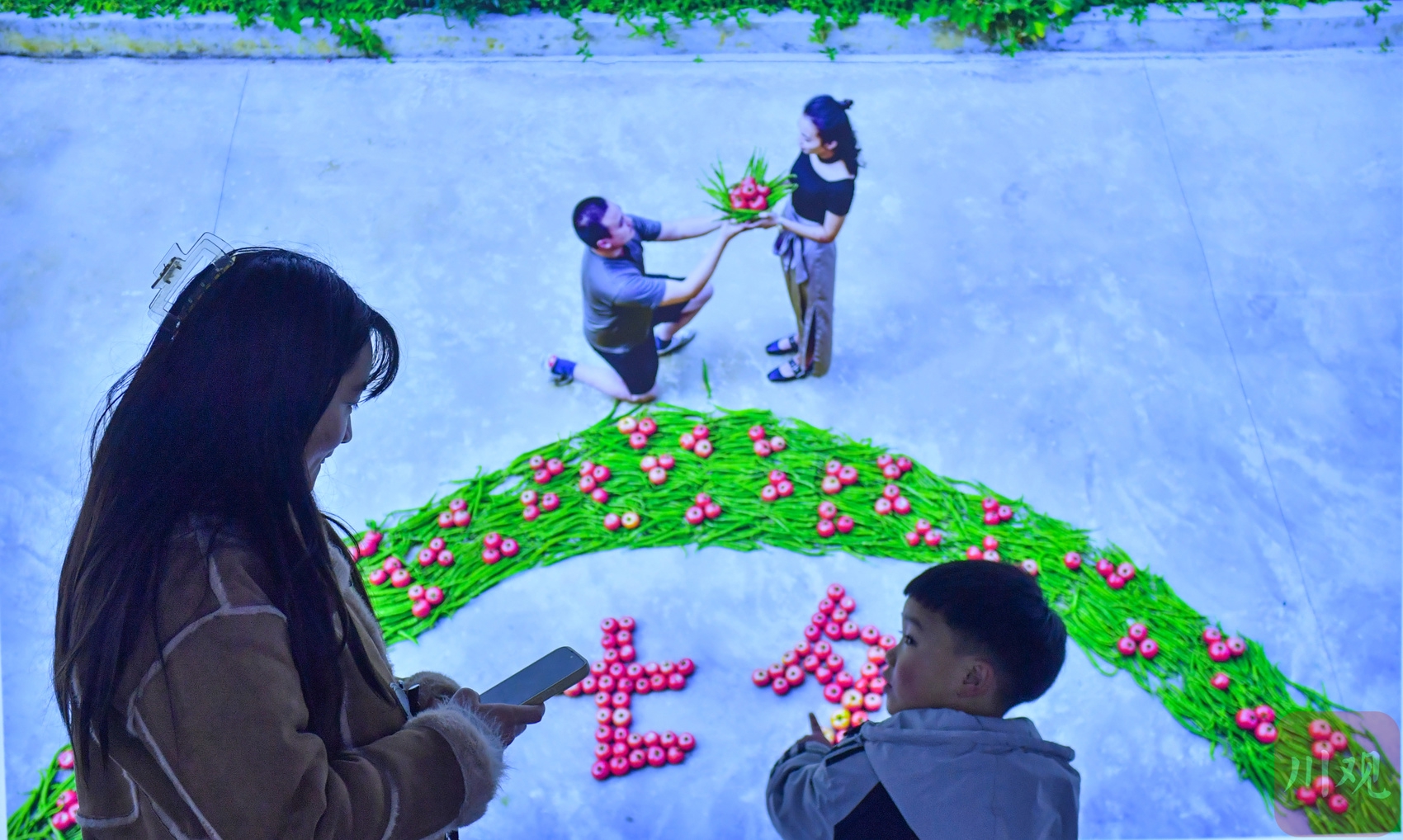 2026年1月25日晚,在成都锦里文化旅游街区,“萤火·追光”摄影展吸引游客拍摄留念。