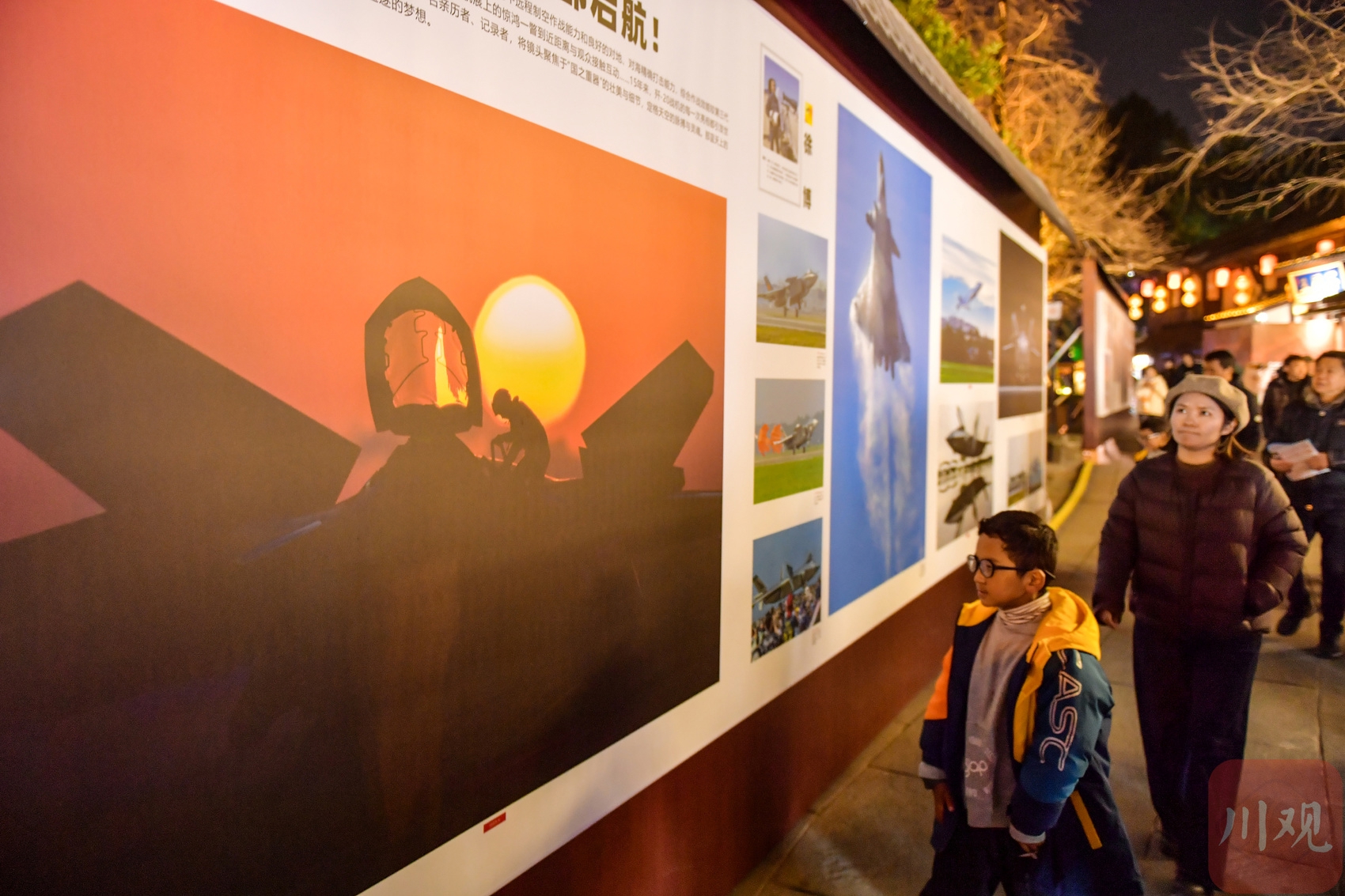 2026年1月25日晚,在成都锦里文化旅游街区,“萤火·追光”摄影展吸引游客驻足观赏。