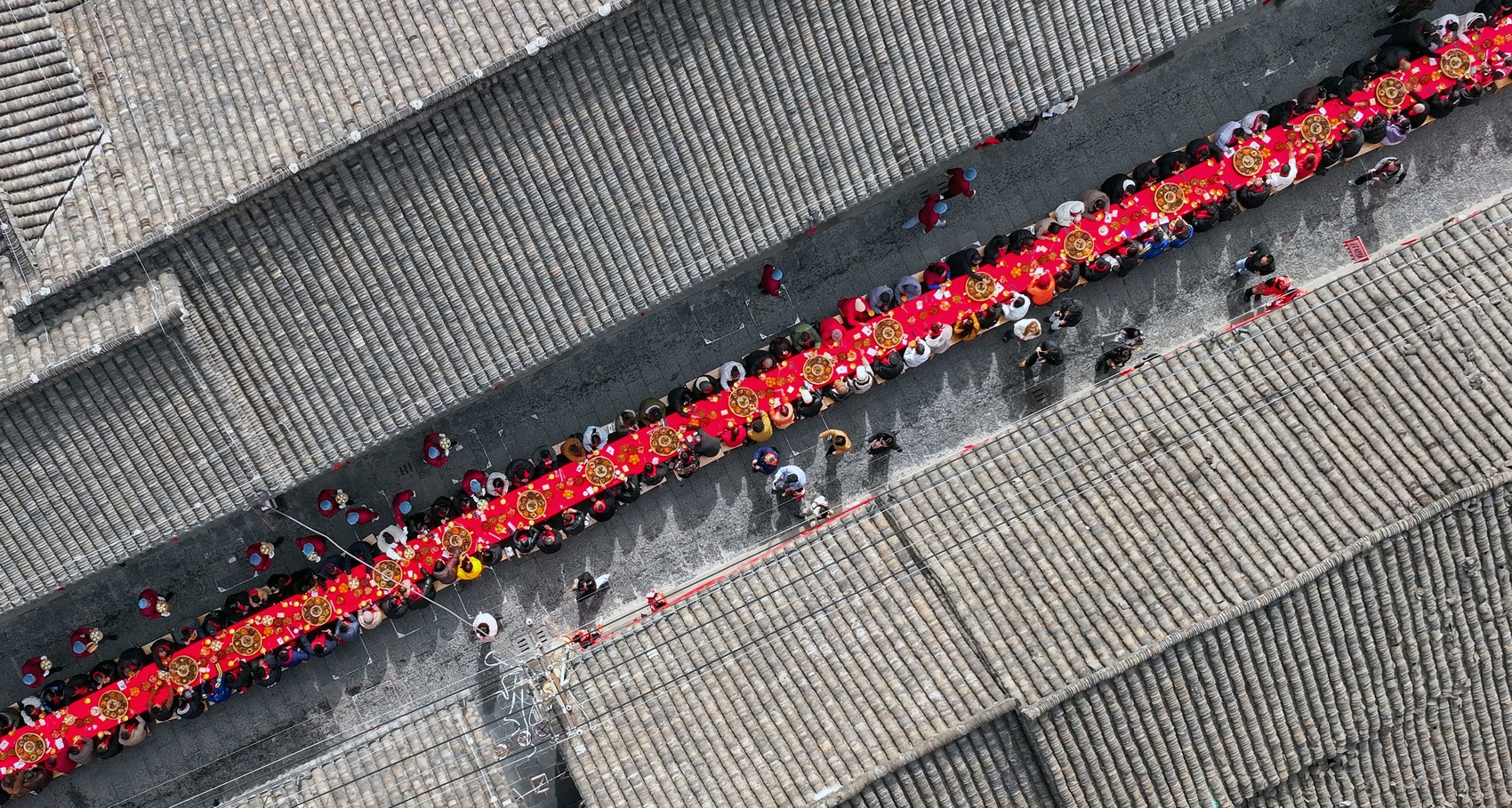 此次长桌宴的举办地——西街,是城厢古城保留最完整的古街,全长300余米。青石板路在这里蜿蜒延伸,青砖灰瓦间沉淀着千年文脉与岁月故事,更见证着古城的蝶变新生。2025年10月,西街经过修缮后焕新开放,新都城遗址公园、沙河书斋、古城驿站等近20个特色点位错落分布,新引入的文旅业态为古老街巷注入了现代活力与生机。