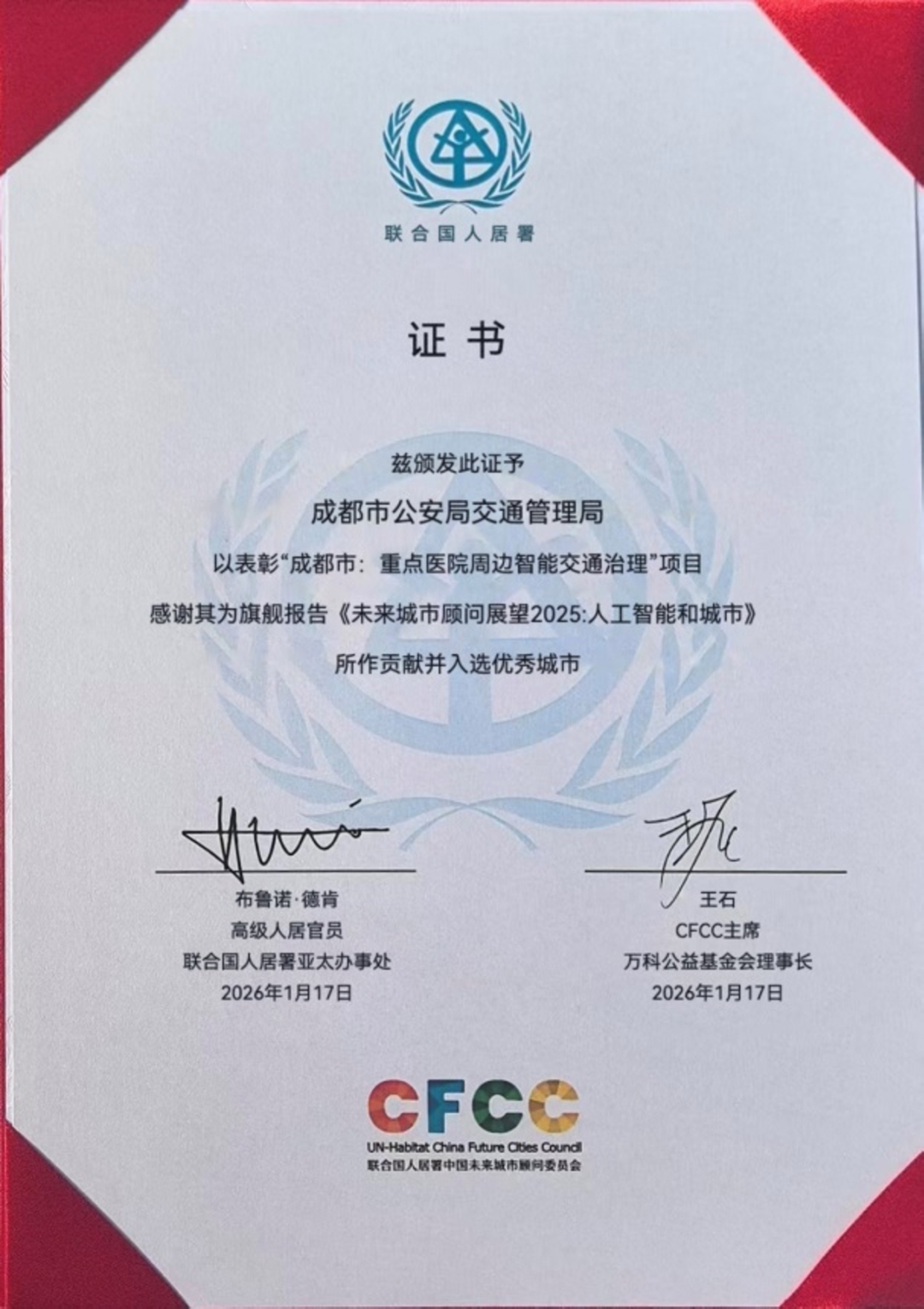 据联合国人居署中国未来城市顾问委员会相关工作人员介绍,该报告每年面向全社会开放案例征集工作。成都报送的“重点医院周边智能交通治理”项目,聚焦民生高频刚需场景,兼具典型性与复杂性,所提解决方案科学可行、具备普适推广价值,可为全国各城市及地区开展同类工作提供重要实践参考与经验借鉴。