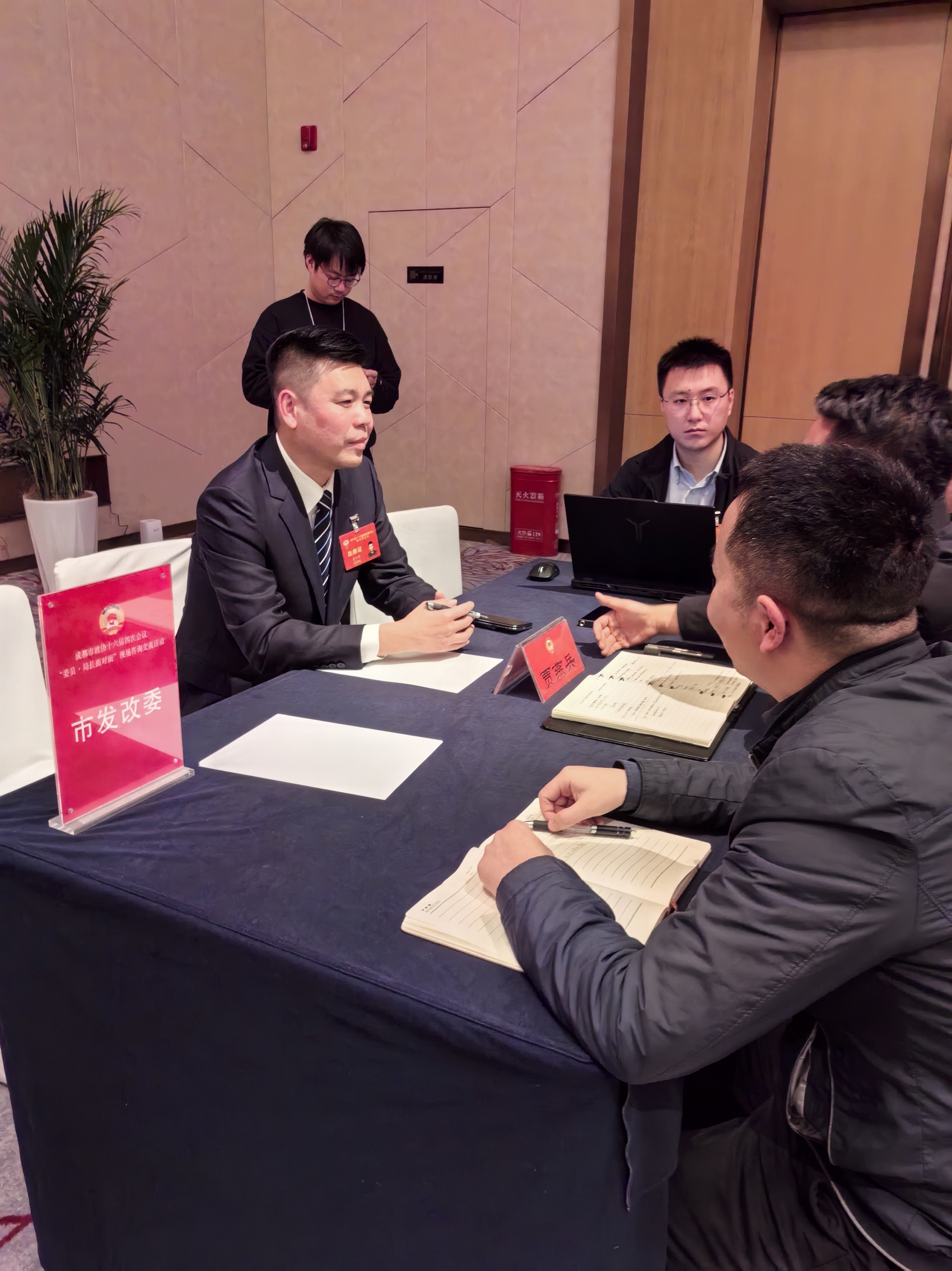 “通过和贾燕兵副主任的交流,我看到了成都积极抢占新赛道、加快布局未来产业的信心和决心!”1月26日下午,成都市政协委员窦云骋与成都市发改委副主任贾燕兵“交头接耳”,不时在笔记本上写写画画,交流临近结束时还互加微信好友。