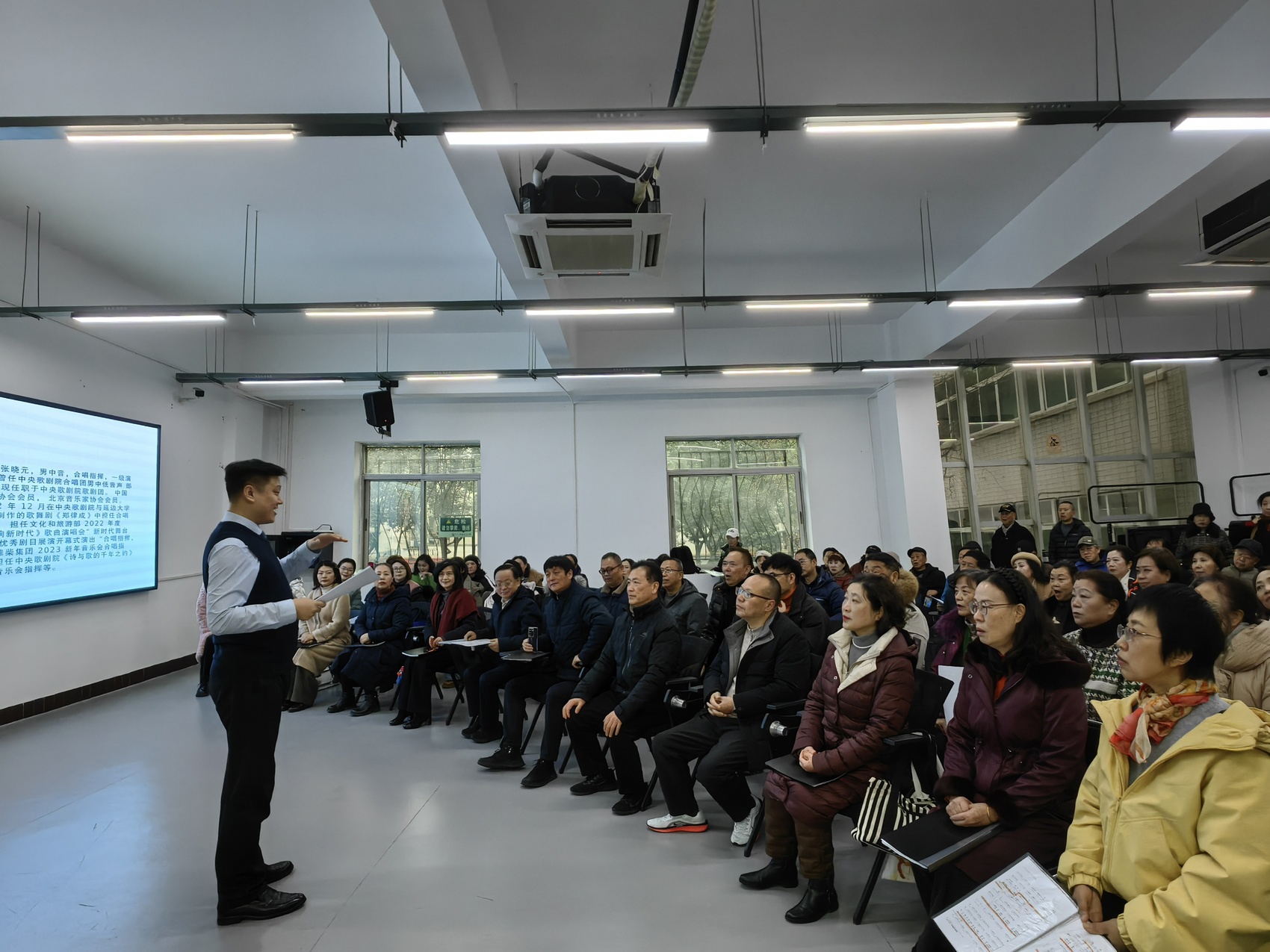 1月24日上午9时,绵阳市文化馆二楼的音乐培训室内,同声缘合唱团正开展日常训练,与往常不同的是,这次授课老师是来自中央歌剧院的张晓元老师。