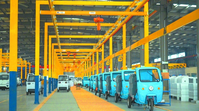 在爱瑞特新能源环卫车产业园生产车间内,焊接机器人舞动机械臂、激光打孔机以毫秒级精度高效运转,勾勒出另一番“竞速”景象。