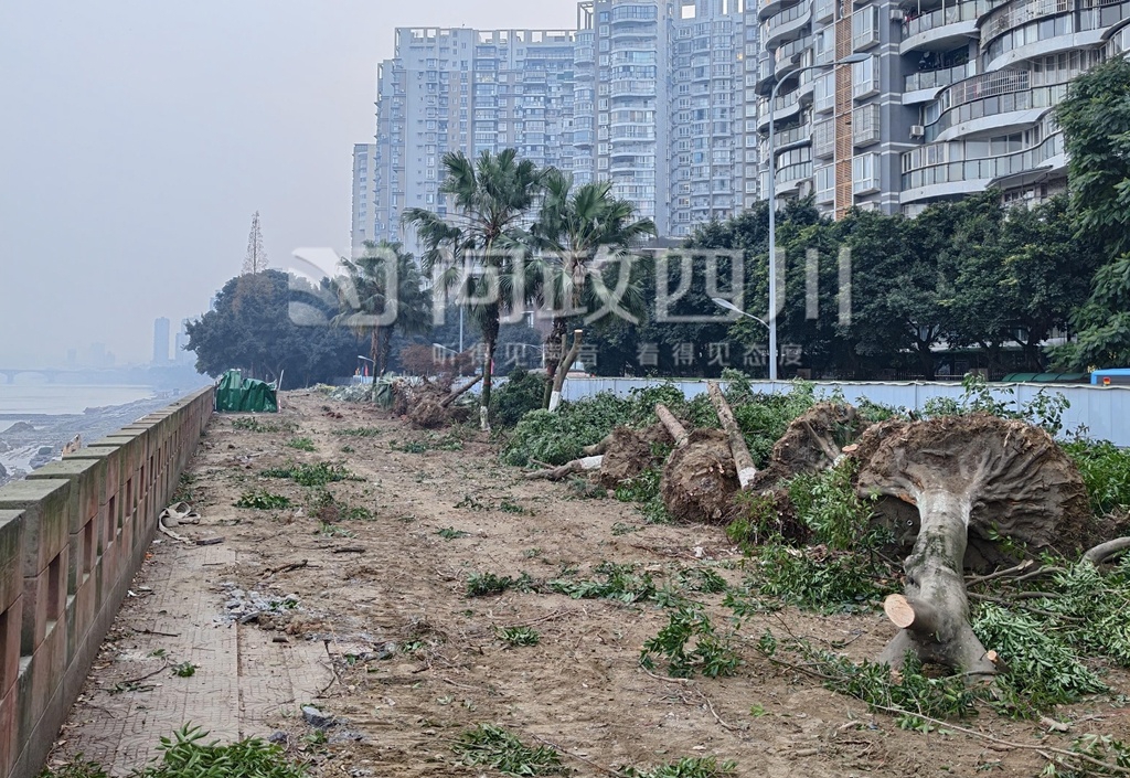 问政四川网友提问:乐山市滨江北路正在进行河堤改造,现场有很多被砍伐的树枝,这些树木最小的也有十几年树龄,沿河绿树成荫已经是附近居民的生态屏障,希望施工单位在保留原有自然环境的情况下进行改造,而不是将这些树木“一砍了之”。