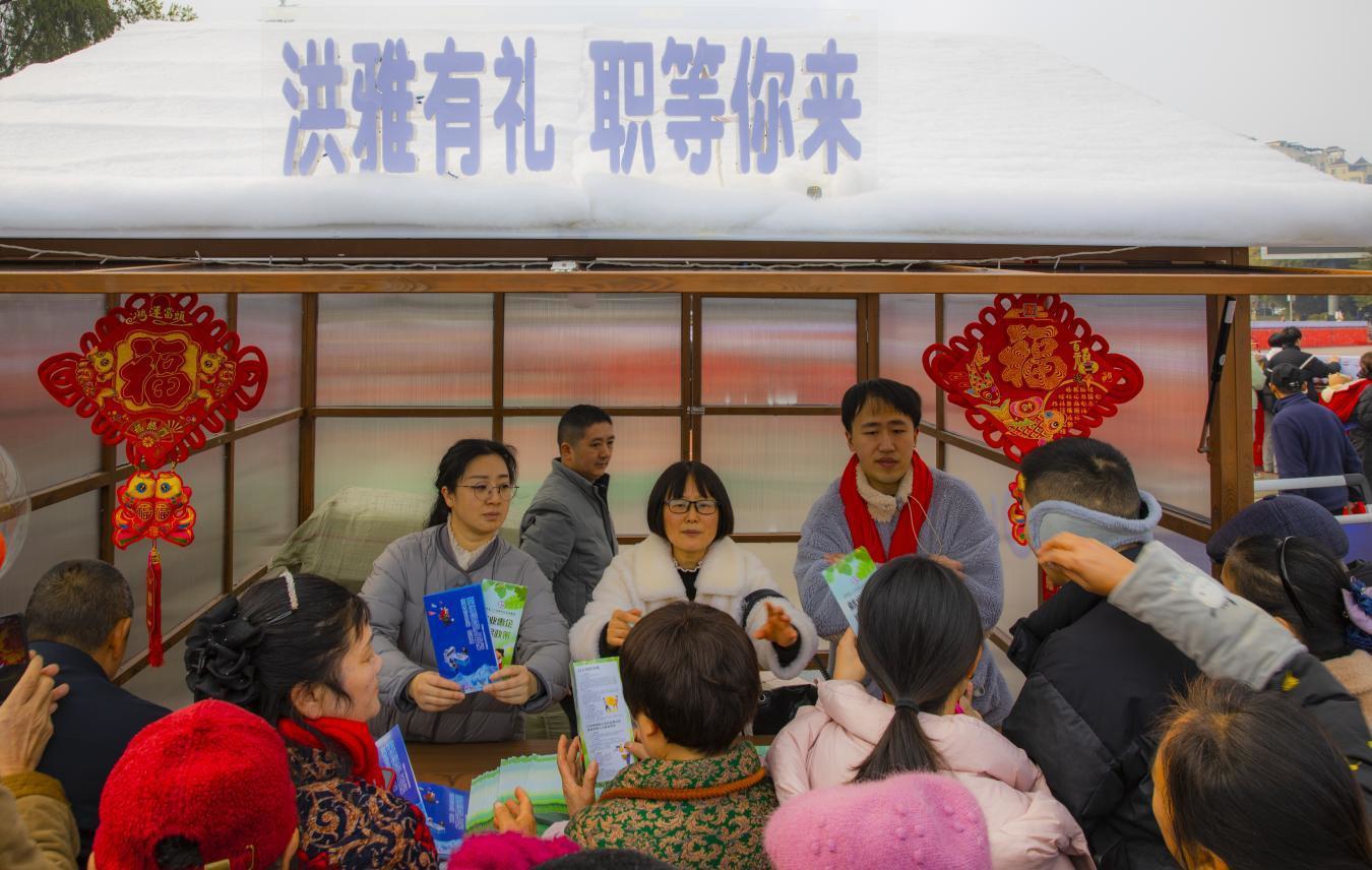 “洪雅有礼 职等你来”摊位吸引众多人士前来咨询。