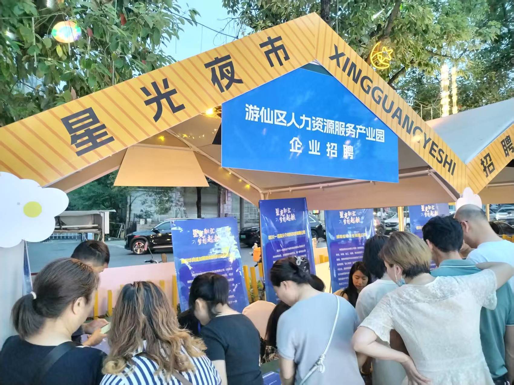 成都、绵阳、内江等地探索突破传统招聘会白天举行的模式,借助夜间商圈人流量大的优势,让求职者在更加轻松惬意的氛围中找工作。
