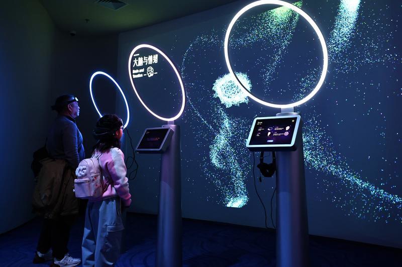 1月27日,参观者在上海科技馆“神奇的我”展区内体验“大脑与情绪”体感游戏。