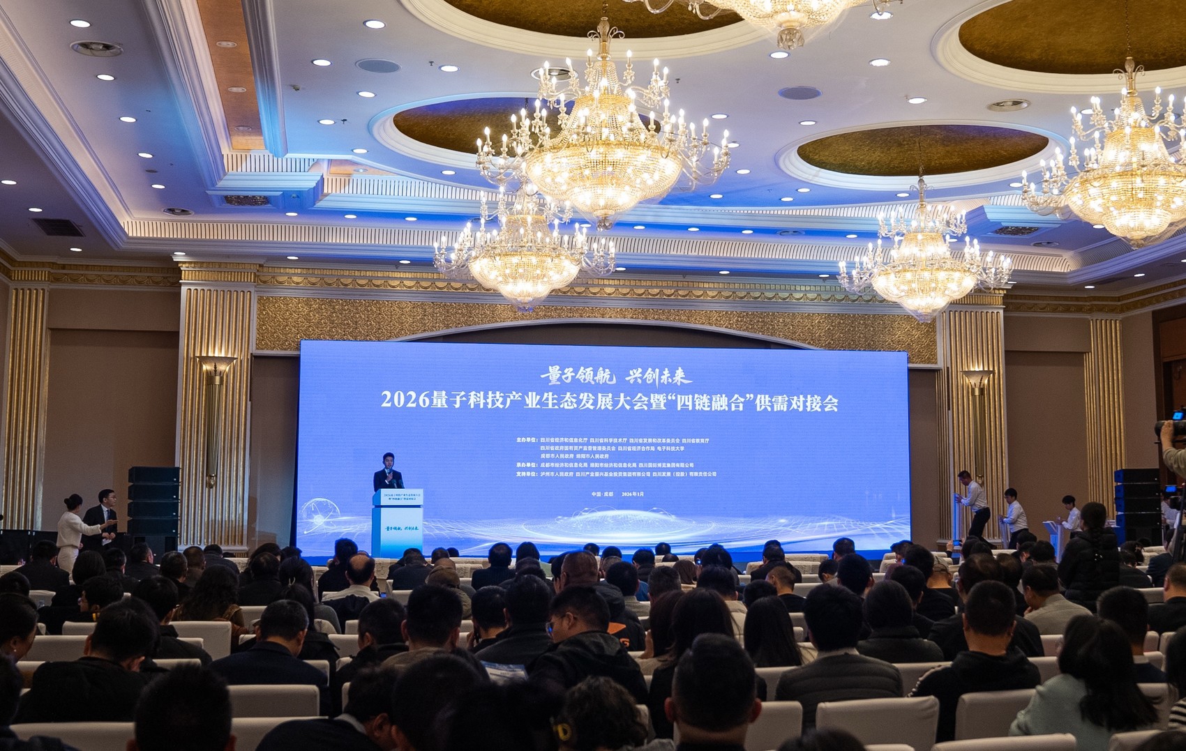 1月26日,抵达2026量⼦科技产业⽣态发展⼤会暨“四链融合”供需对接会现场时,成都中微达信科技有限公司总经理吴峰有些惊讶:展位过道上人挤人,主会场和两个分会场坐得满满当当。