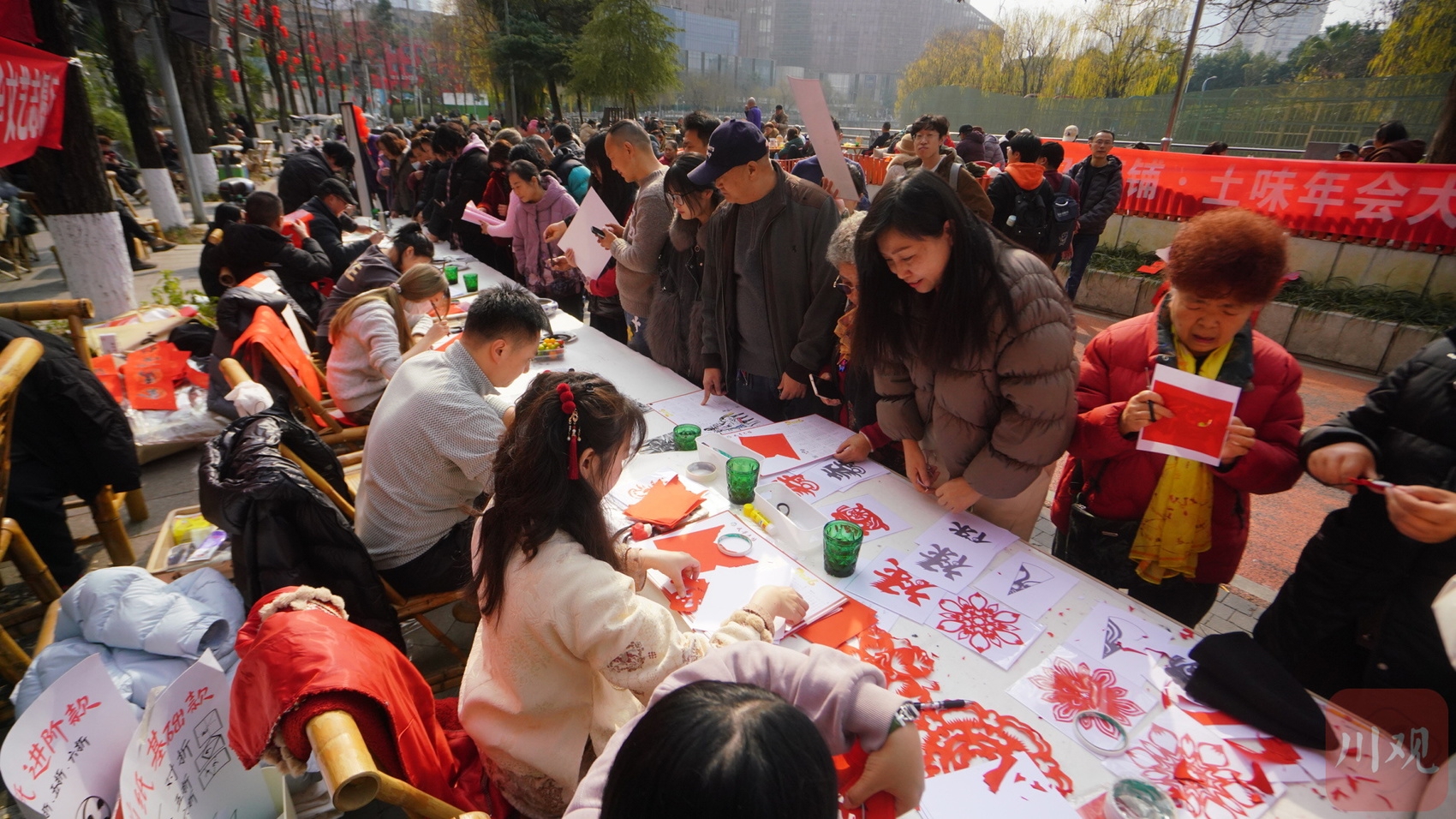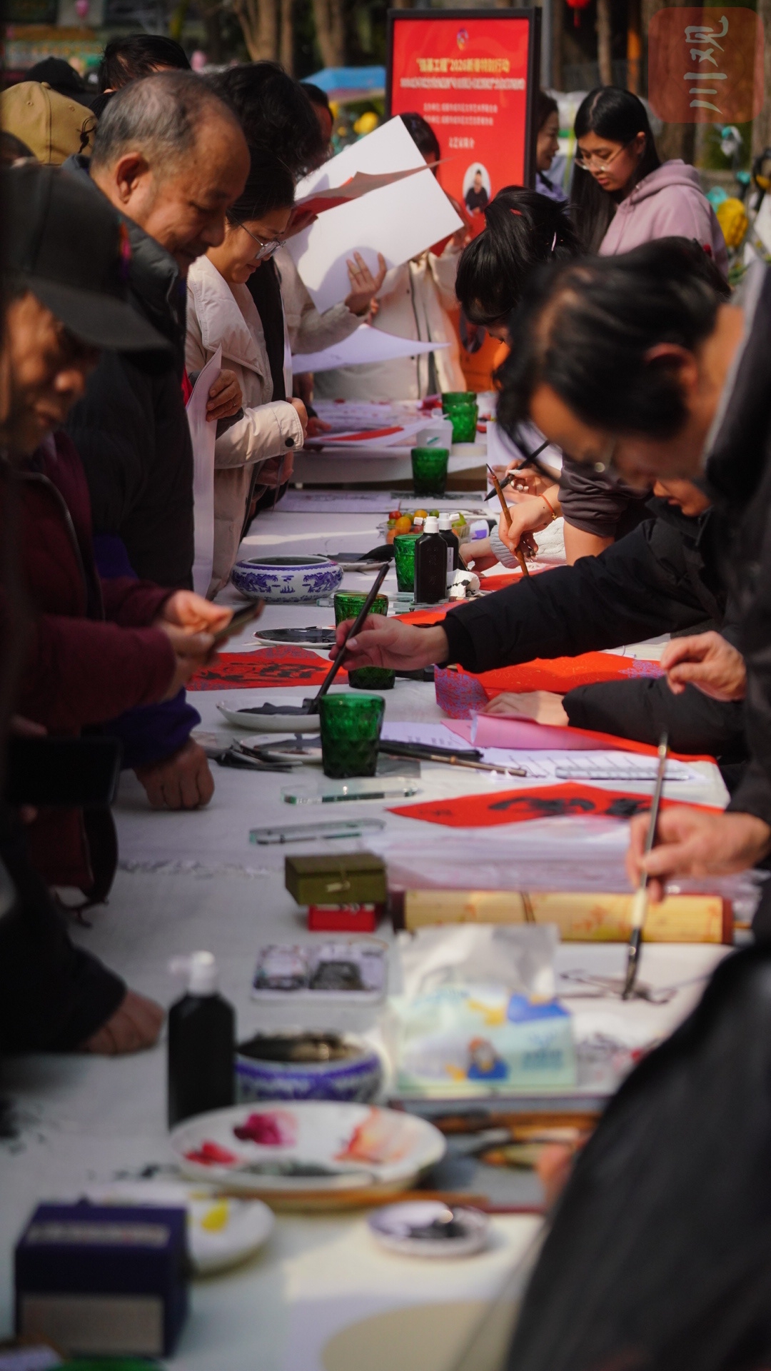 记者在现场看到,红灯笼高高悬挂,长桌沿街排开,由书法家、剪纸艺人等志愿者组成的“新春文艺集市”吸引了众多市民。红纸翻飞间,“马年吉祥”等春联一挥而就;剪刀开合中,骏马、福字等窗花栩栩如生。此外,年画绘制、拓印等活动也引得居民排起长队,免费领到“文化年货”的群众脸上洋溢着笑容。腰鼓表演、大合唱等节目轮番上演,更添市井热闹。